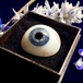 深い青はわずかに緑を帯び、瞳孔の周りだけほんのり葡萄酒色。複雑に渦を巻く虹彩は、まるで深海の渦のよう。小さな義眼ですが、吸い込まれそうなスケールの大きさがあります。何もかも忘れてしまいそう……ぜひ太陽光に翳してご覧下さい。