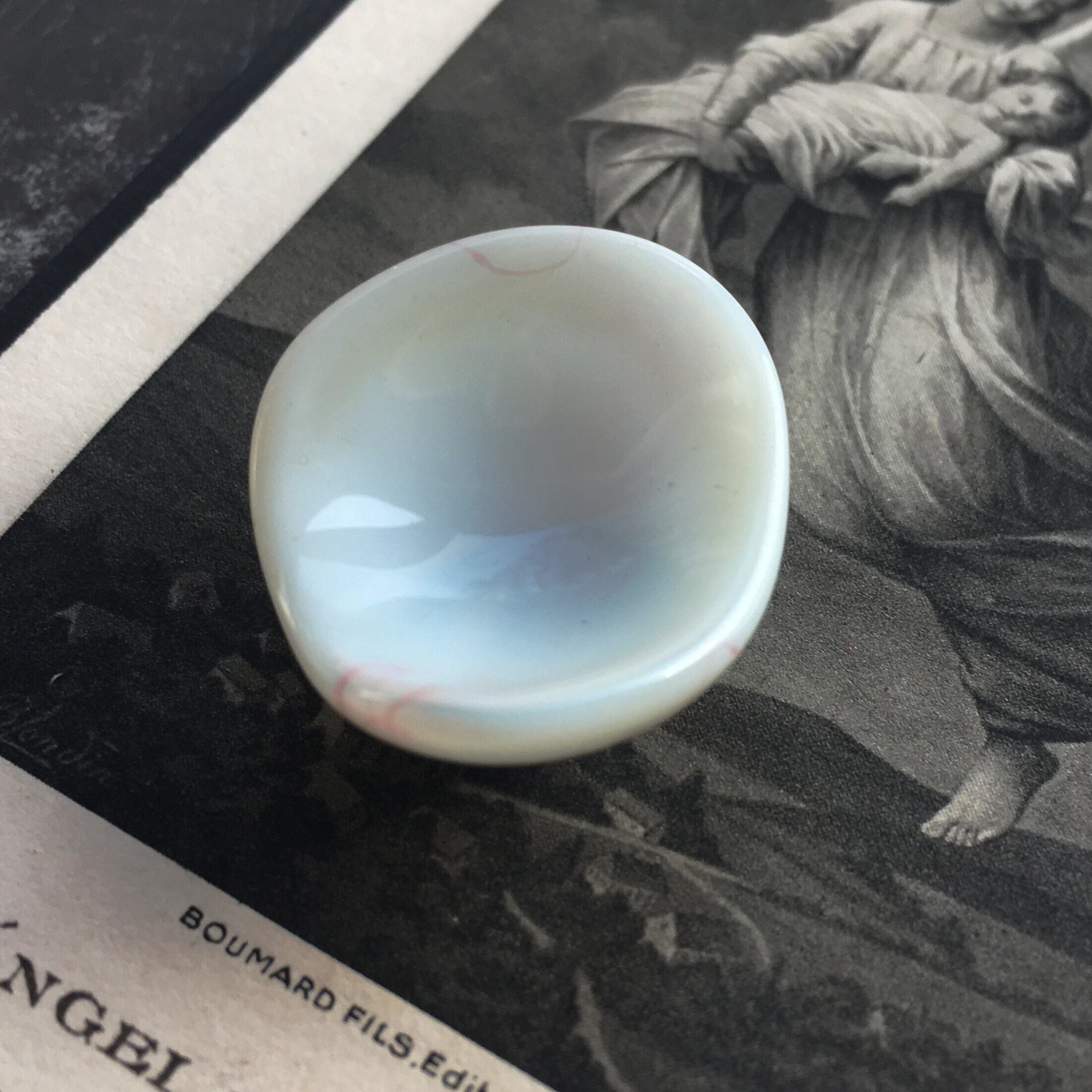 ドイツ、ラウシャの義眼で、製作は1890年頃。ラウシャは現在もガラス工芸の村として有名ですが、100年ほど前に作られたガラスの義眼は、透明感、虹彩の細工など、本当に素晴らしいものです。弊店のオリジナルデザイン、箱作家さんによる手作りの専用箱に入れてお届けします。箱の内寸は一辺約4センチですので、サイズの目安にしてください。