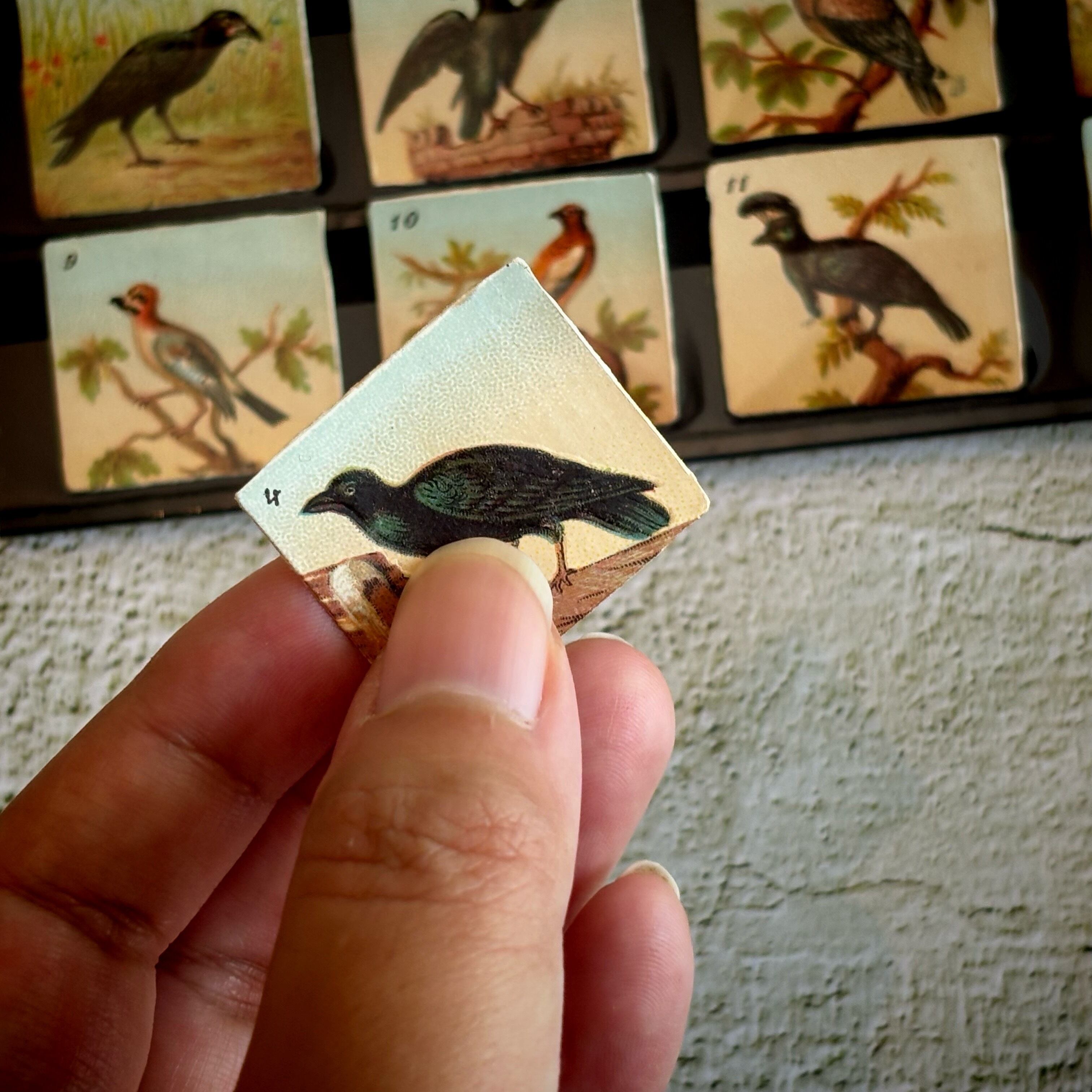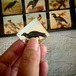 サイズは一枚が約3×2.7センチです。このサイズなら小さなフレームに1枚だけ標本のように展示しても素敵ですし、12枚をずらりと飾って自分だけの鳥類図鑑を作ってもよいですね。お気に召すままにお楽しみください。