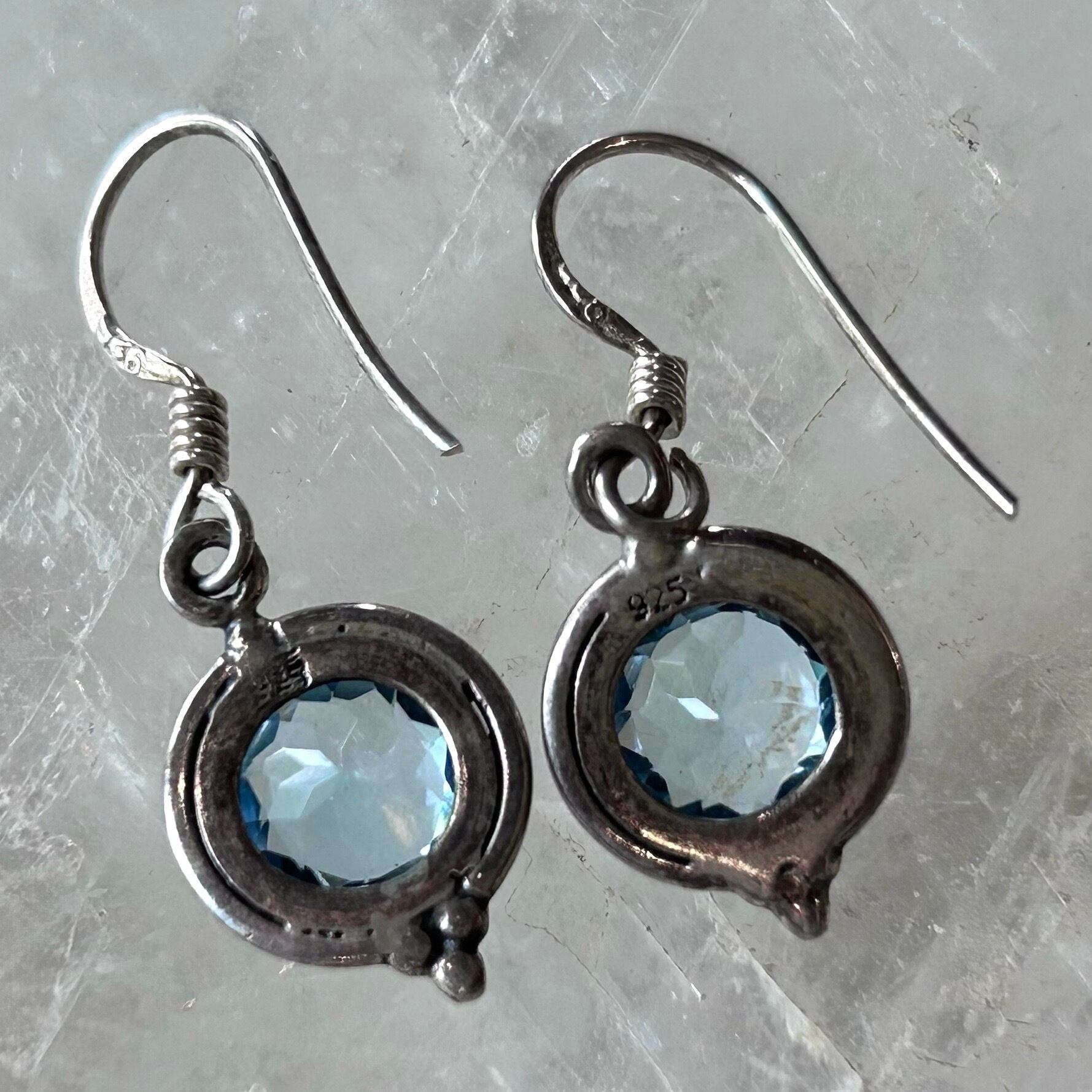 耳元に可憐な煌めきが、しかし、よく見るとそれは冷え切った氷の欠片だったのです。そんな風に物語が始まるような、透き通るブルートパーズのピアスです。ひんやりと静謐な薄青に少し黒みを帯びた石が綺麗にカットされて、動くたびに銀色の光を放ちます。
