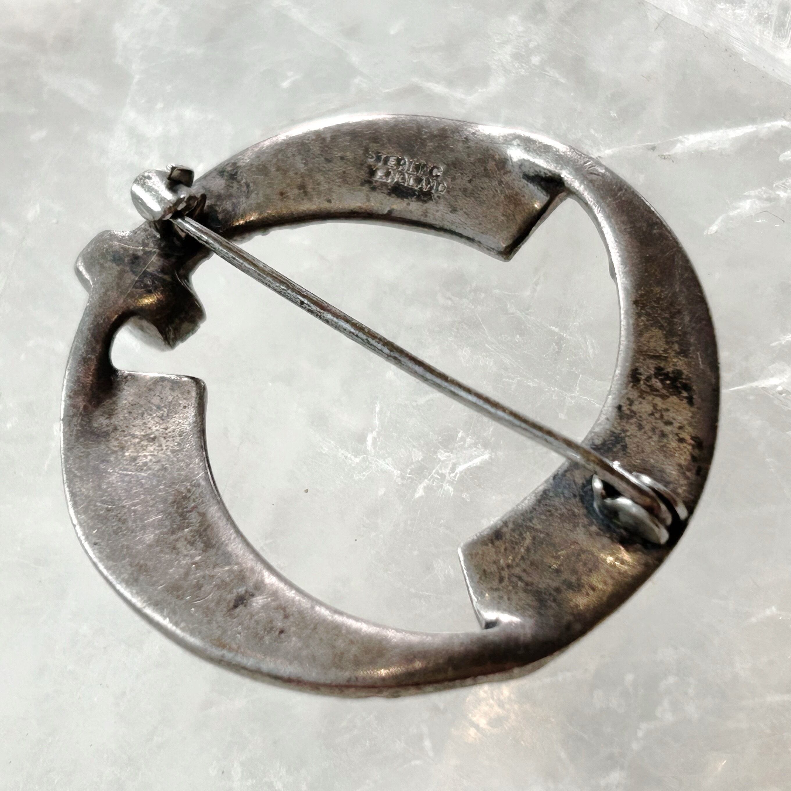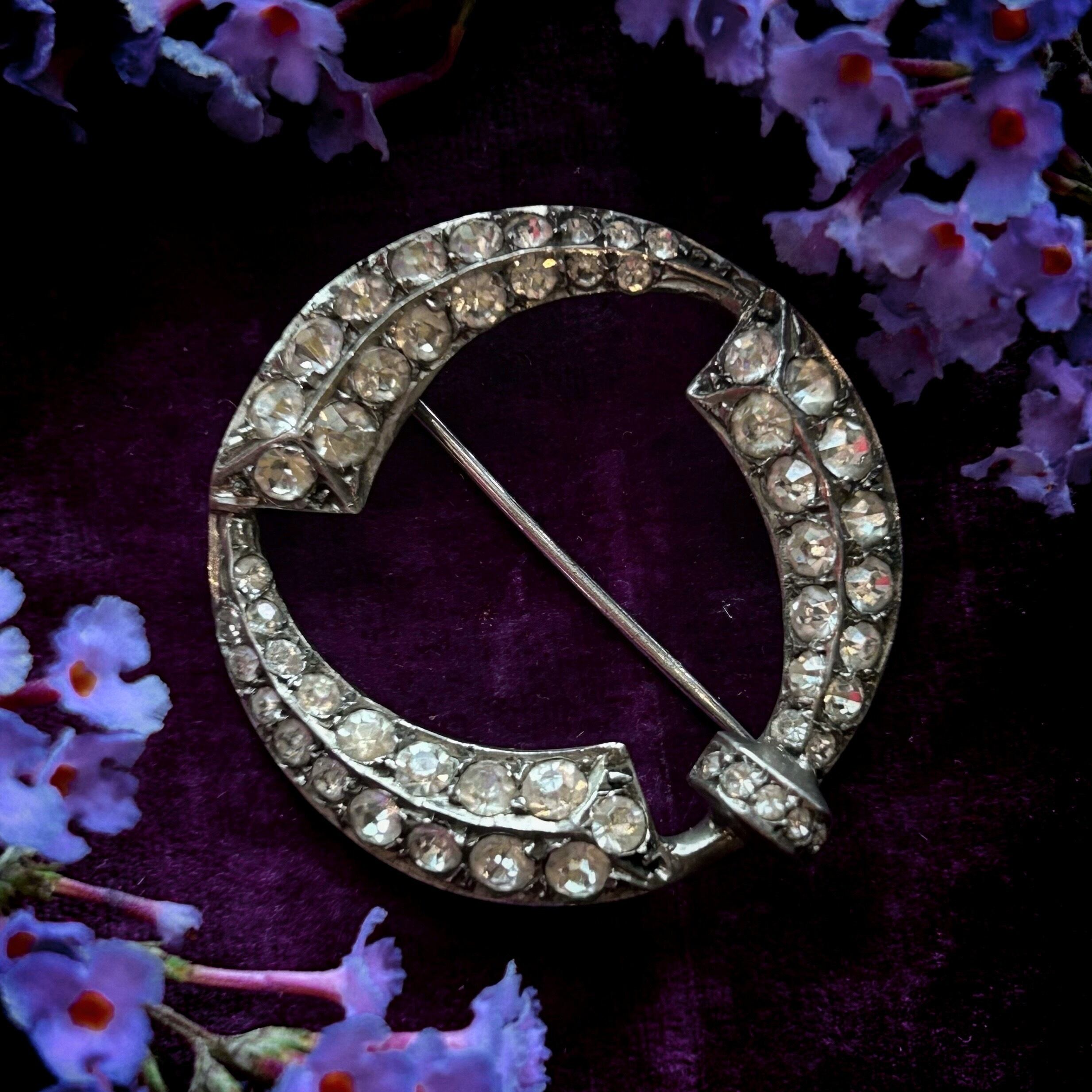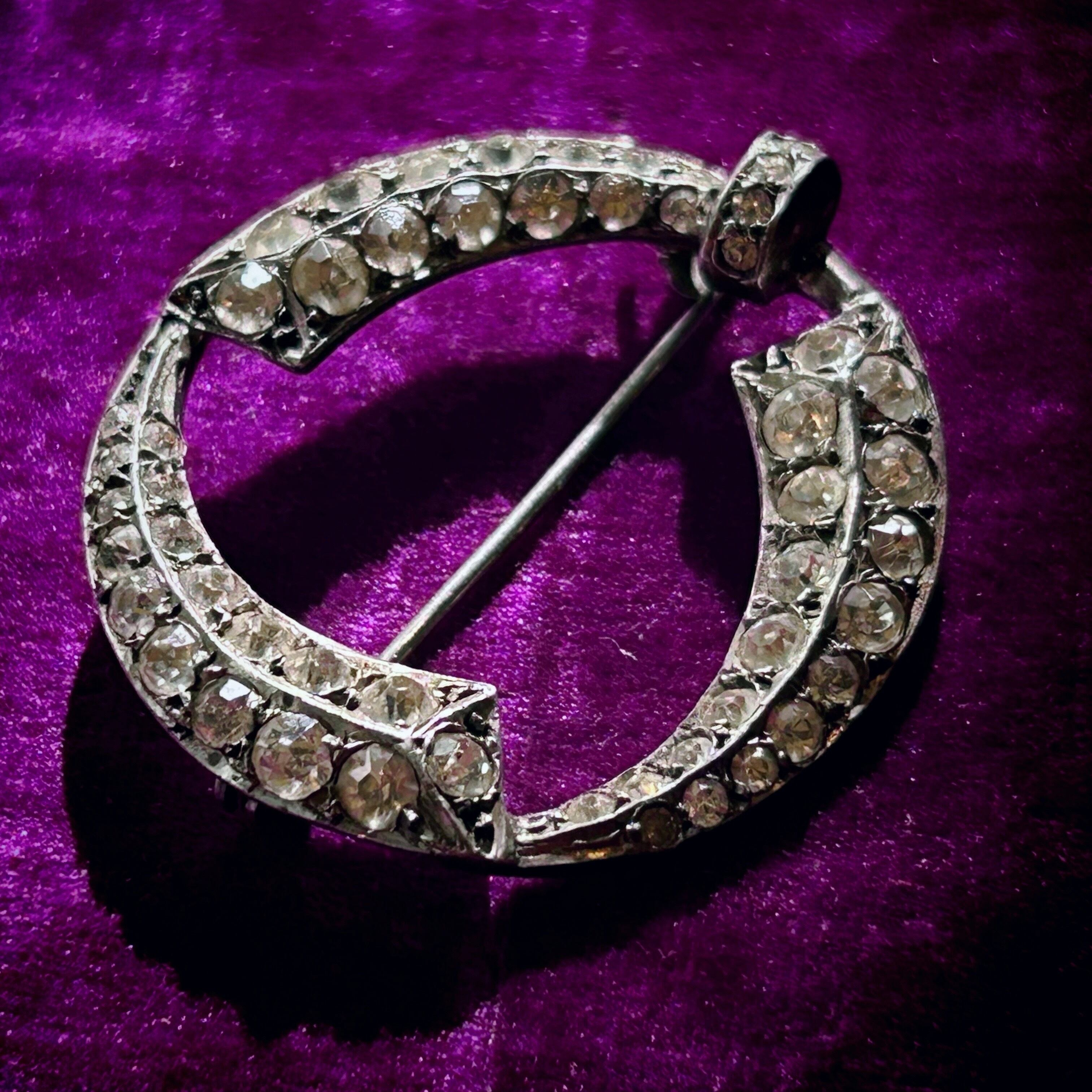 銀色の光が輪となって渦巻くブローチです。綺麗にカットされたペーストガラスが惜しげもなく散りばめられ、角度によって銀の煌めきを放ちます。回転する渦のような造形も素敵で、まるで夢の中を飛び回る生きた光の群れを見ているようです。