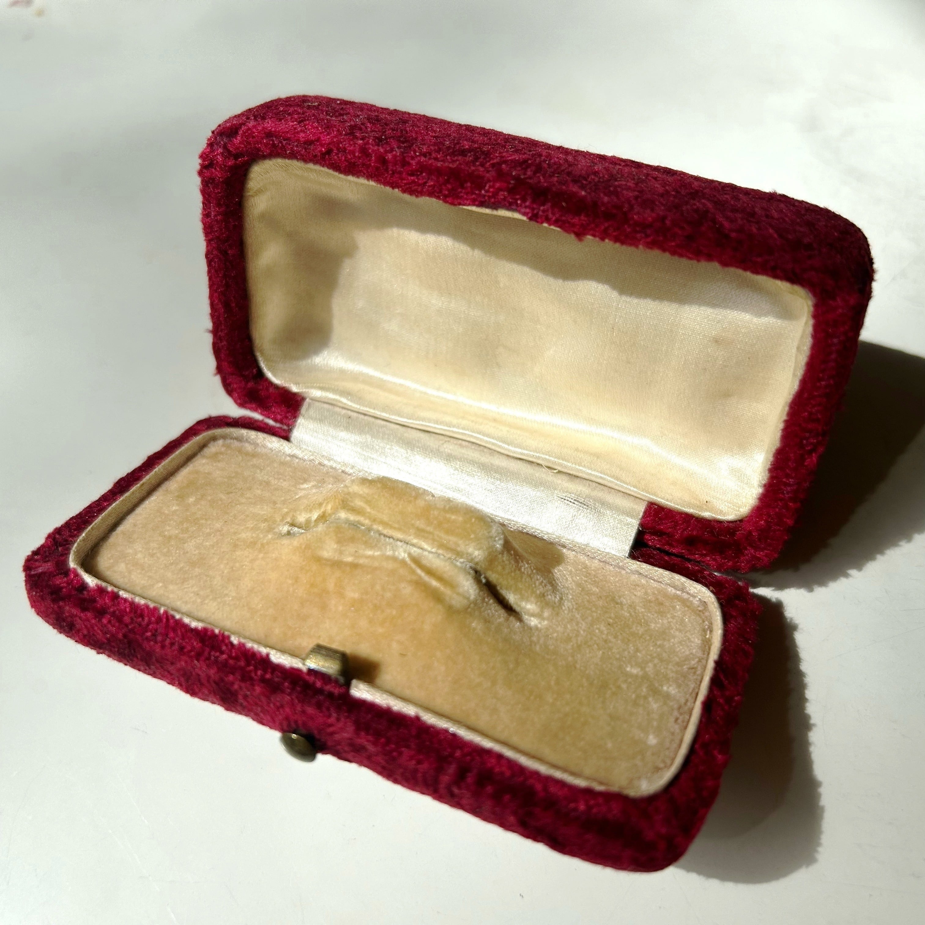 付属のジュエリーボックスはほぼ同時代のもので、買い付け時からついておりました。一緒におつけしてお届けしますが、赤いヴェルベットがまるで女王様のローブのようです。