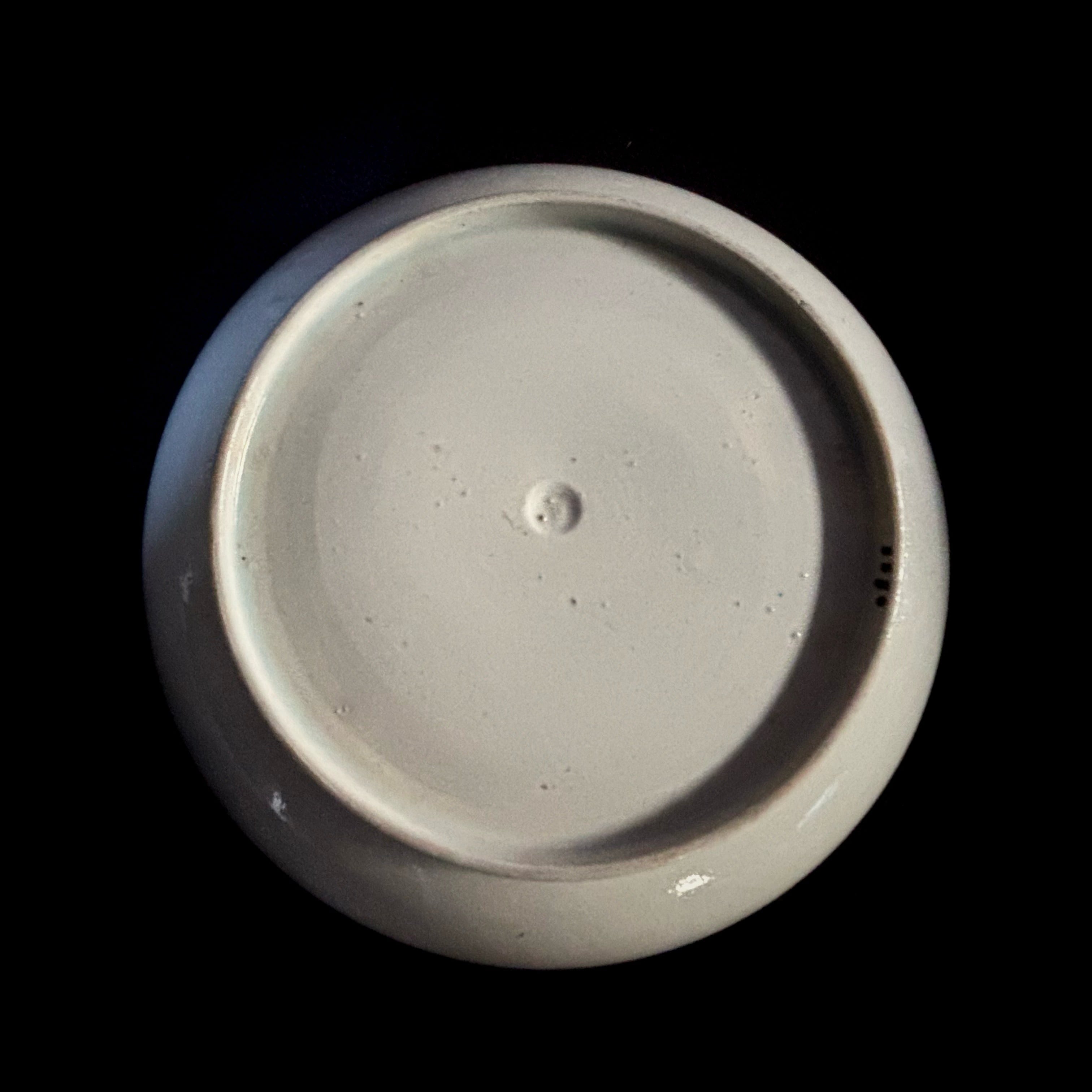 17世紀中頃、イギリスに入って来たお茶は東洋の秘薬でした。使われる茶器も最初は中国のティーボウルで、それらが時間をかけて嗜好品として広まって行くのですが、東方のものへの憧れは心の何処かにずっとあったことでしょう。こちらは19世紀になって作られたものですが、光沢のある釉薬は当時、イギリスで使われたパールウエアと呼ばれるもので、やはりそれまでのお茶の文化を色濃く感じさせます。沸騰した紅茶を入れた持ち手のないボウルは持ち難く、深く作られた受け皿にこぼして飲むということが行われていました。この習慣は20世紀になっても高齢の方の間で残っていたようです。
