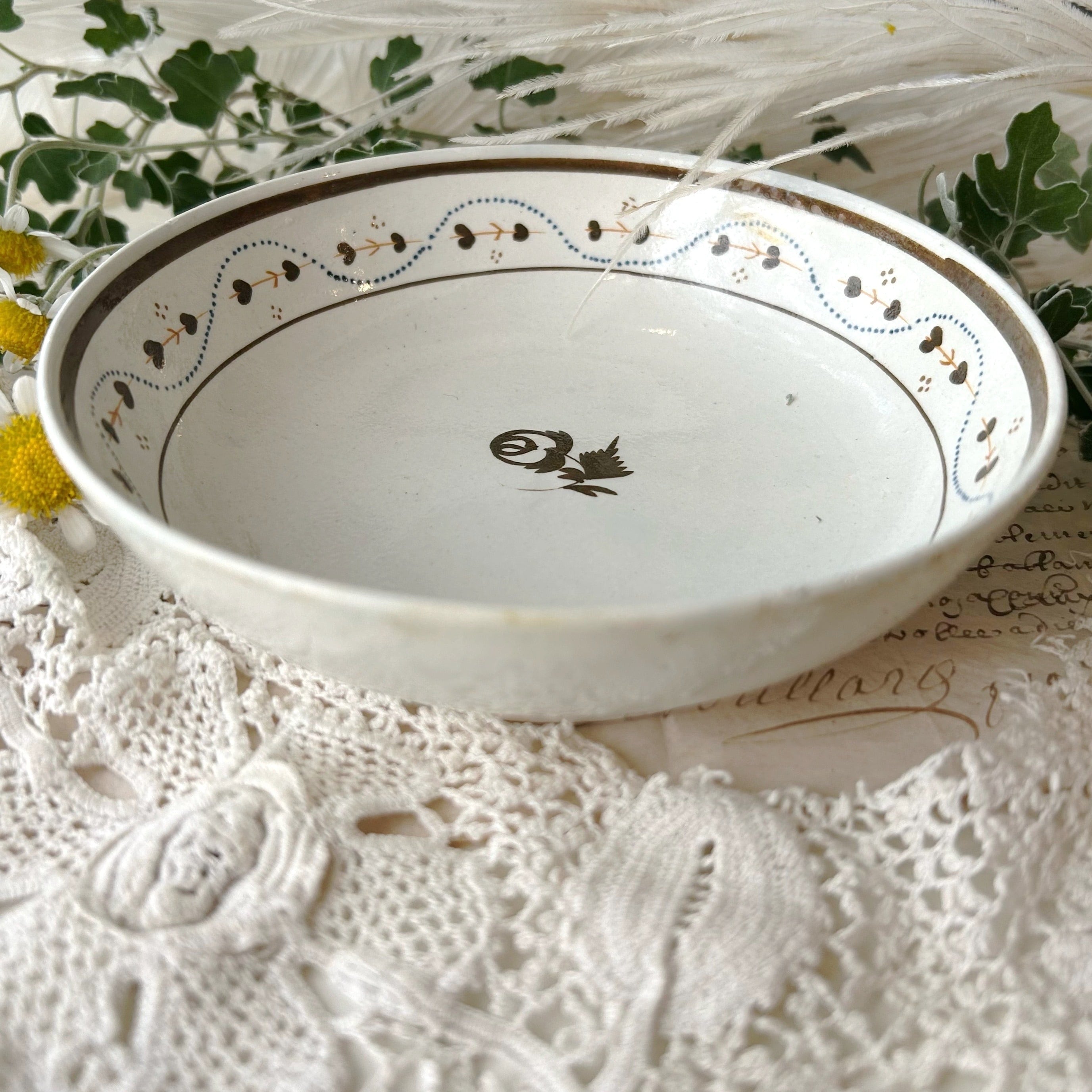 19世紀初めのティーボウル(手描きの花)