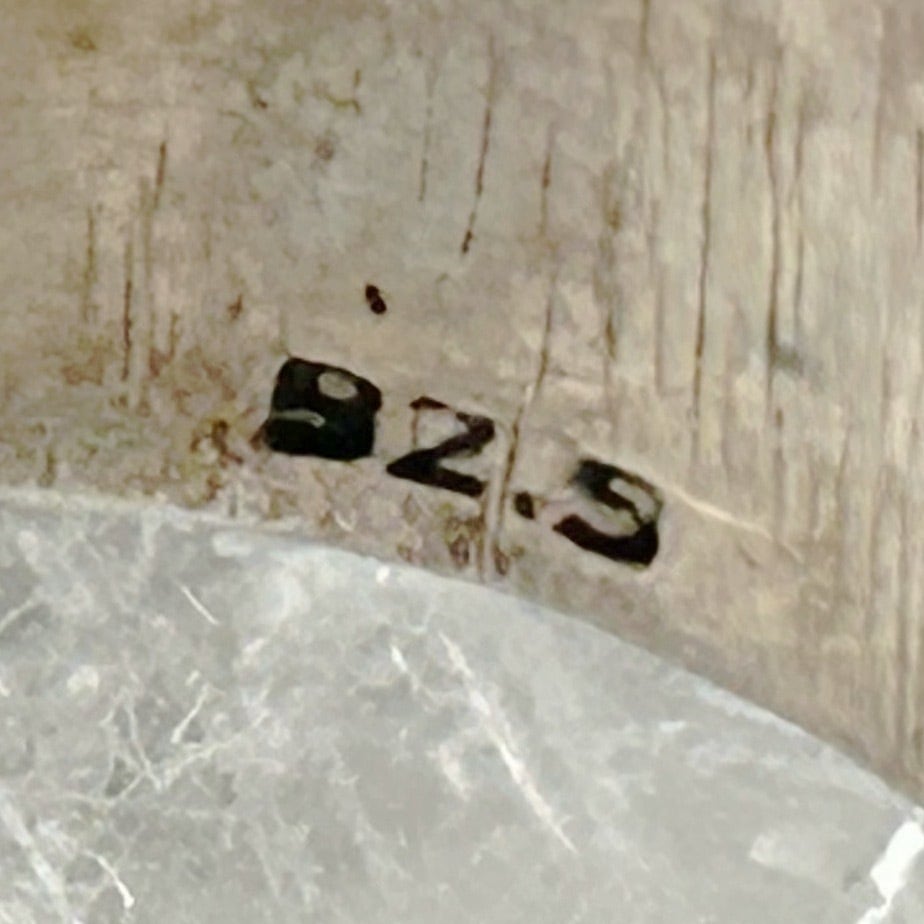 20世紀中頃までのイギリス製と推定されます。サイズは、ヘッド部分の直径が約0.7センチ、リングは日本の規格でだいたい12号程度です。