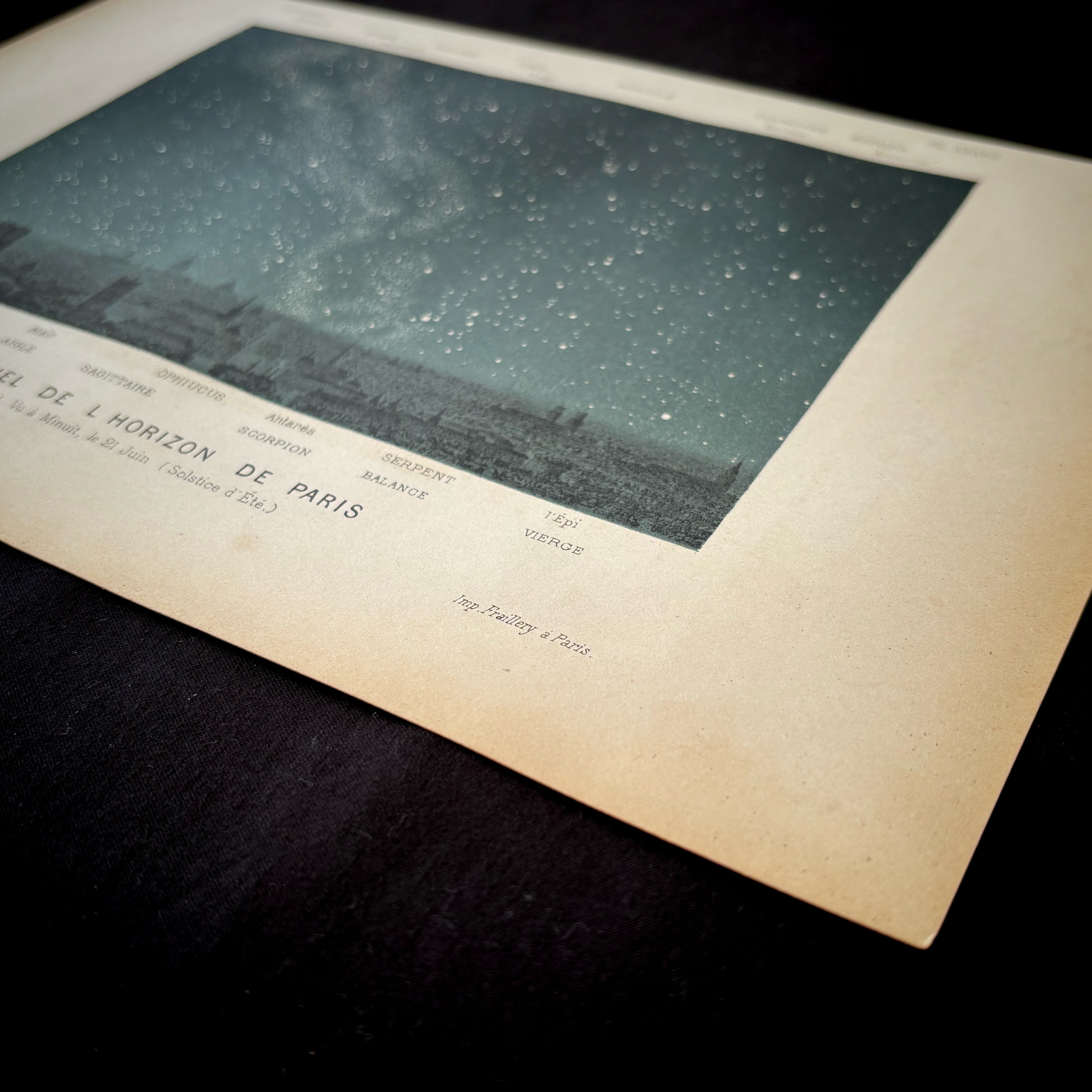 この色彩リトグラフはただ天体を記録するのではなく、まさに夏至のパリの夜空を、その気配や空気感まで豊かに今に伝えているのです。