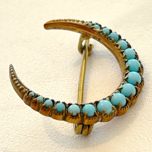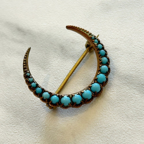 ほんのり薄い青の粒が巧みなグラデーションで置かれた三日月のブローチです。どこかミルキーな色彩が、澄んだ夜空に優しく照り輝く月光を思わせます。