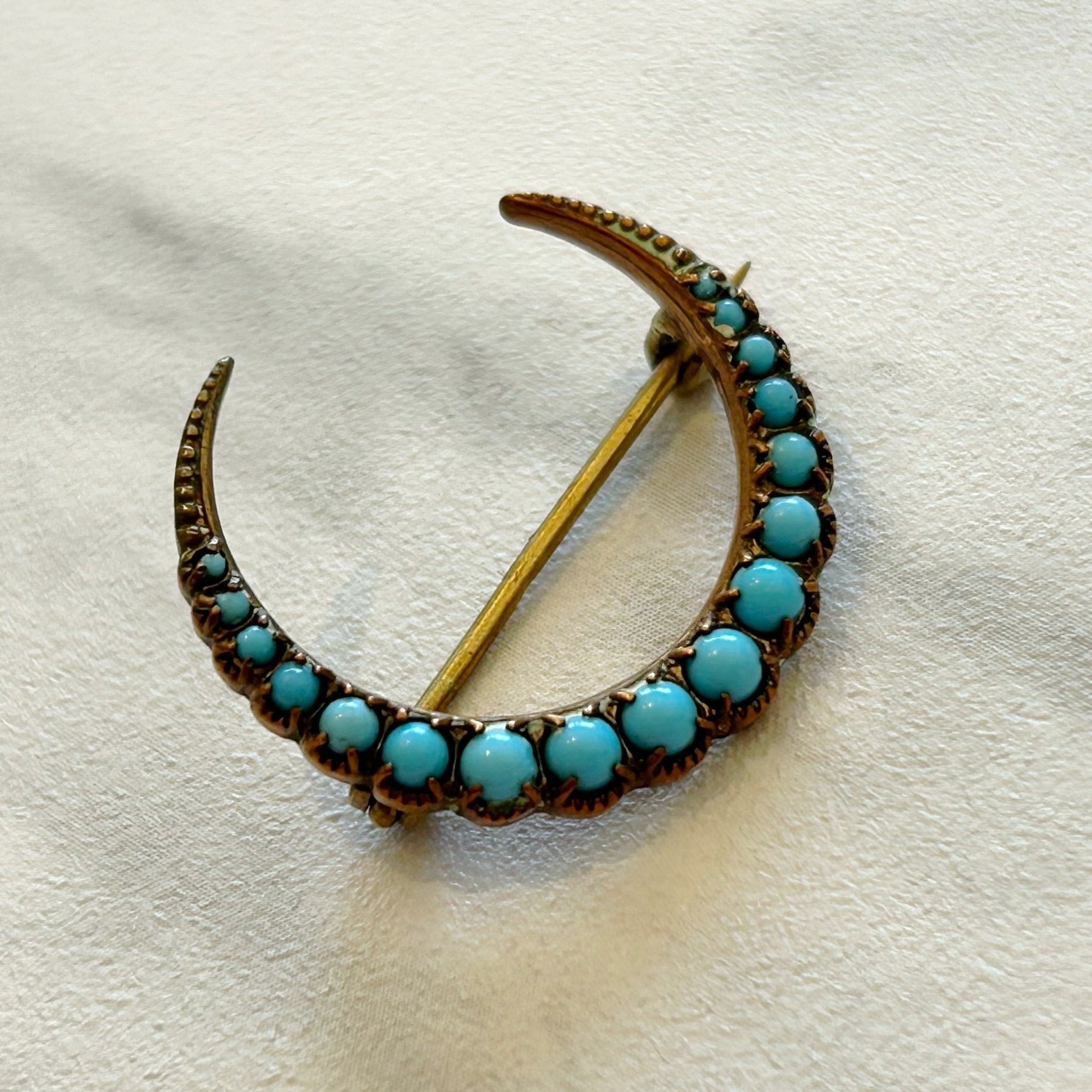 青い三日月ブローチ