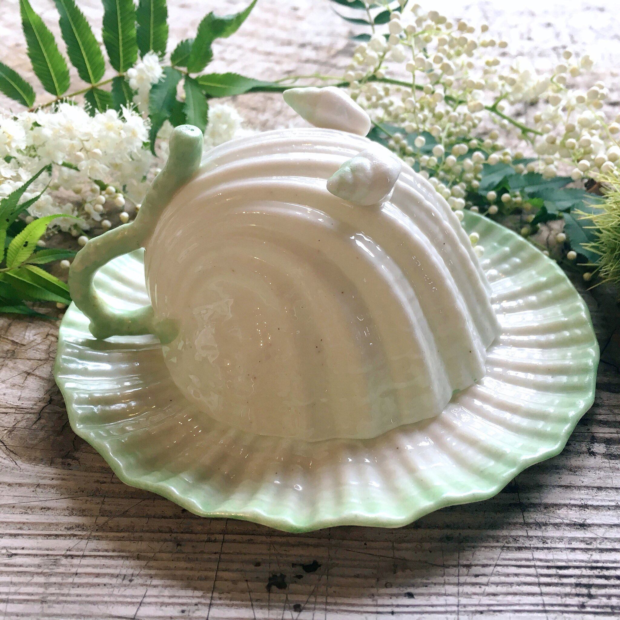 ネプチューンの名にふさわしく、全体が貝、カップの脚が貝、持ち手がサンゴのデザインです。ポーセリンマークは窯の創業以来2番目、1891年から1926年に使用されたセカンドブラックマークです。ネプチューンシリーズの中でも、この時代のものは生地や細工の繊細さ、美しさはとびきり素晴らしく、長い歳を経た希少性もあります。生地は、光はもちろん、マークが透ける程の薄さですが、手洗いをしていただければ実用にも十分堪える強度があります。