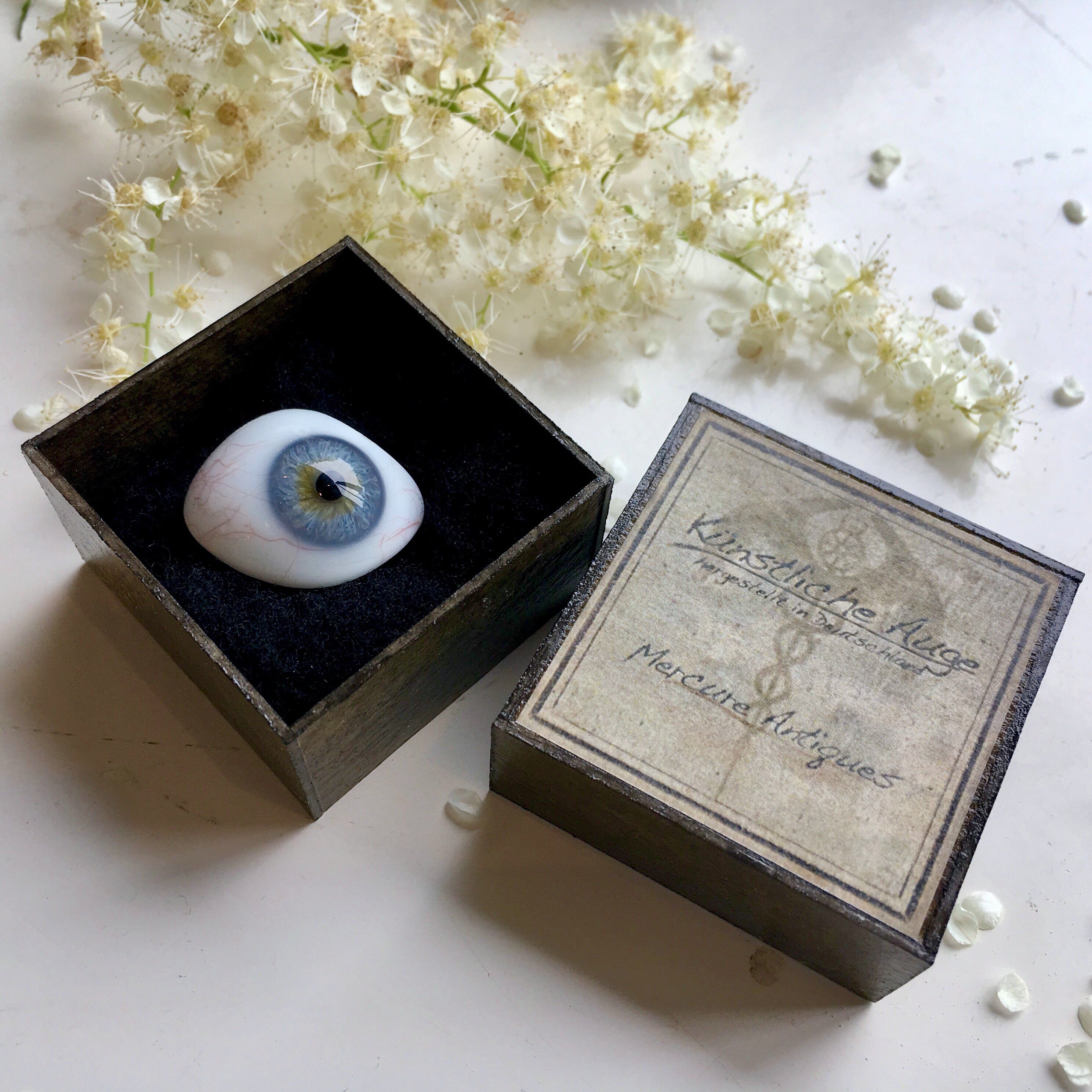 ドイツ製、製作は19世紀末から20世紀初頭です。弊店のオリジナルデザイン、箱作家さんによる手作りの専用箱に入れてお届けします。箱の内寸は一辺約4センチですので、サイズの目安にしてください。