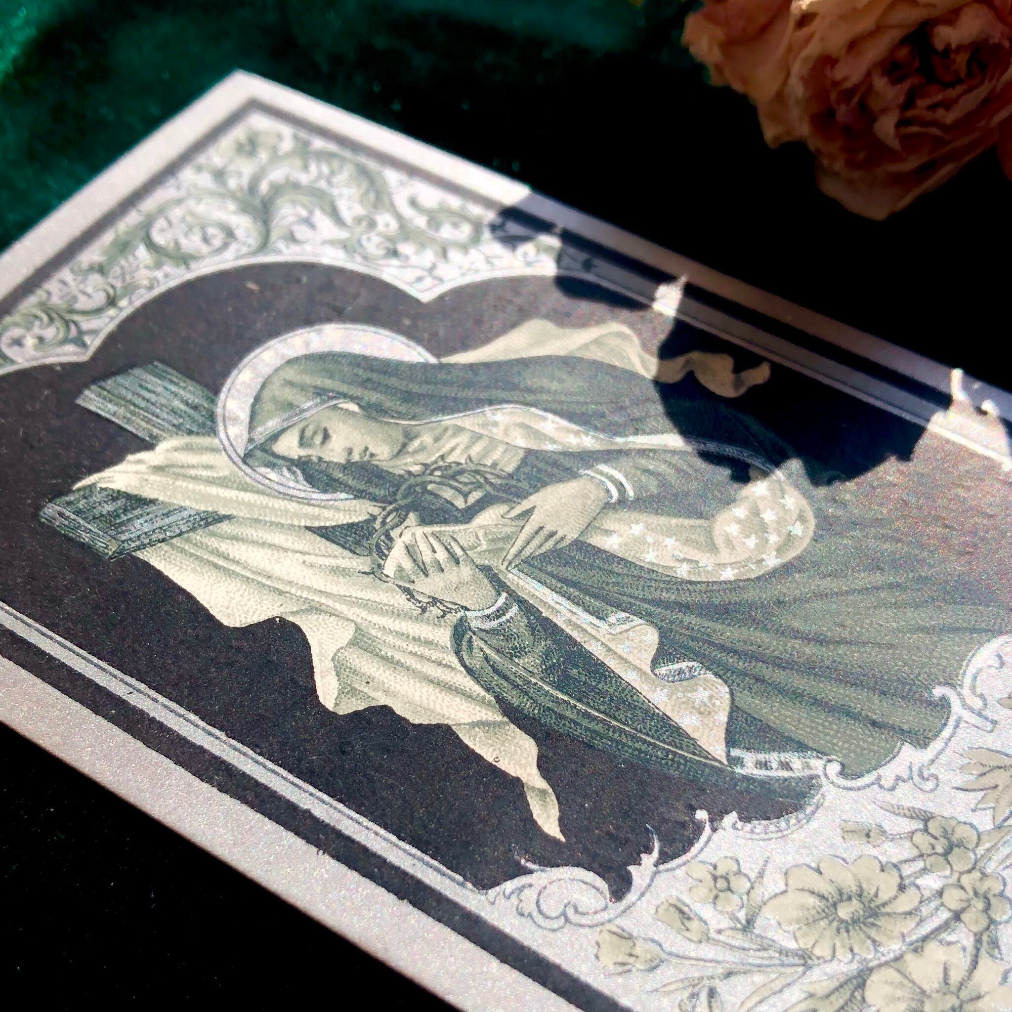 よく聖書や祈祷書に挟まっていますが、お葬式の度に聖書に挟んでおくのだと思います。そしてことある事に眺めて故人に思いを馳せるのでしょう。死を忘れず、人を忘れず、追悼の気持ちをこのような美しい形に昇華した、切なく美しいデスカードです。どうぞお手元にお迎え下さい。