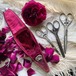 使い込まれたケースはバーガンディ色のベルベット。蓋を開けると、薔薇色の内張りに包まれた3つの鋏が出てきます。鋏を合わせると十字架が現れる凝った意匠。切れ味鋭く、まだまだ実用して頂けます。このような優雅な裁縫道具を使って、誰が何を作ったのでしょうね。