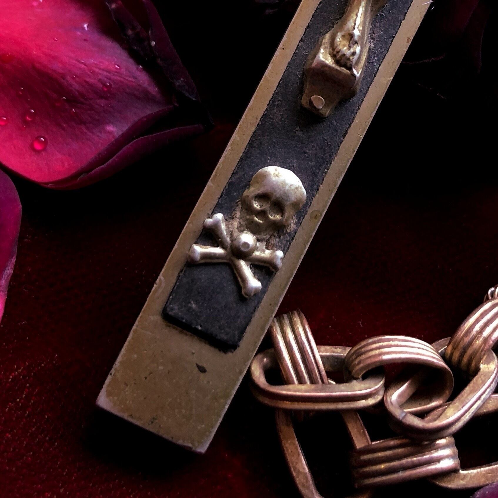 髑髏付きの十字架は聖職者専用でしたが、大戦中にナチスが髑髏マークを使用した事から、それ以降は使われなくなったようです。時計鎖の状態も良好。ウォレットチェーンやキーホルダー、バックチャームなどにいかがでしょう。