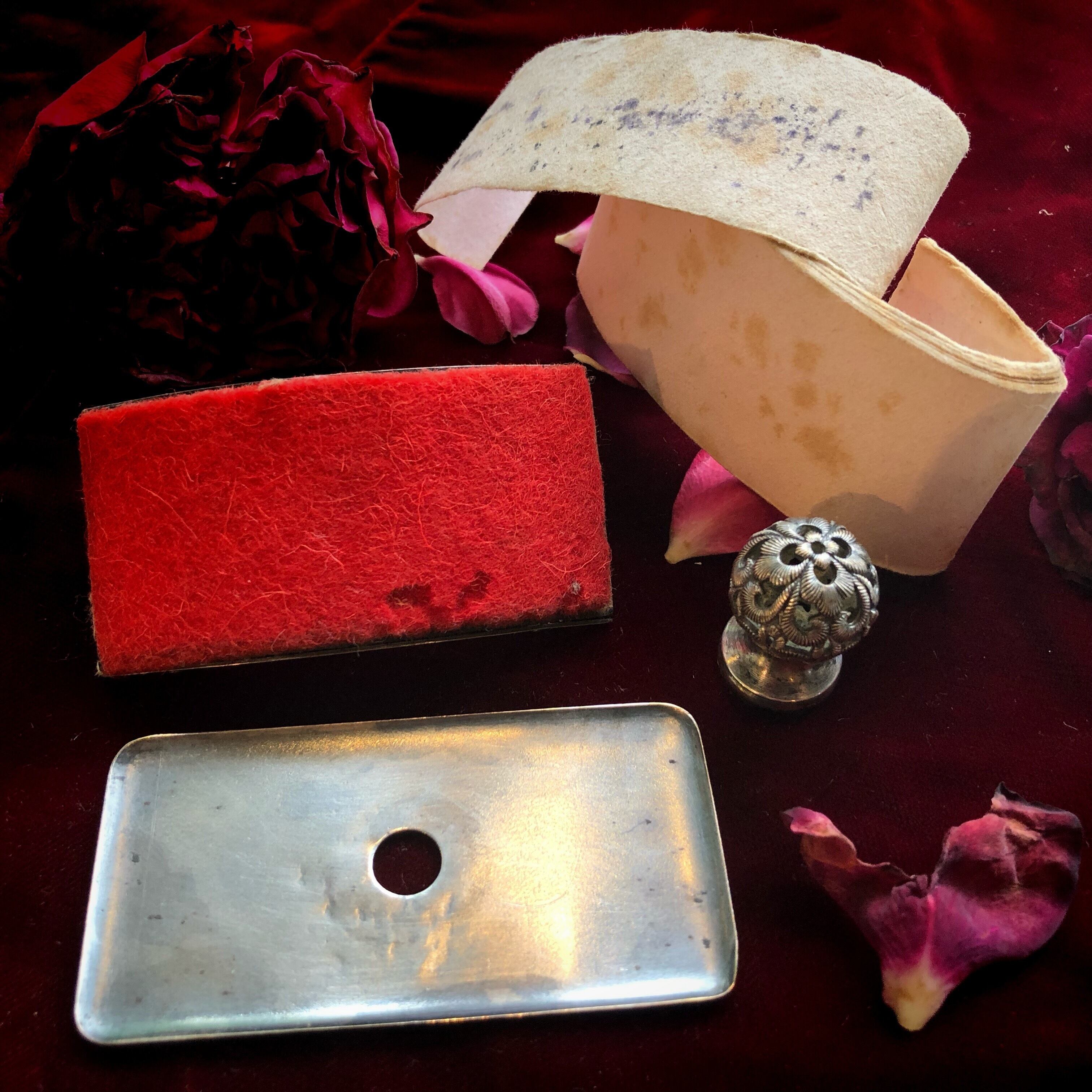 19世紀フランス製。サイズは、ブロッター部分が約4×8センチ、吸い取り紙から持ち手までの高さが約5センチです。