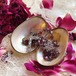真珠貝で作ったケースと、ラヴェンダーのガラスをあしらったロザリオです。残念ながらチェーンを外す部分がなく、頭からかぶることができませんので、このままではペンダントとしての使用はできません。
