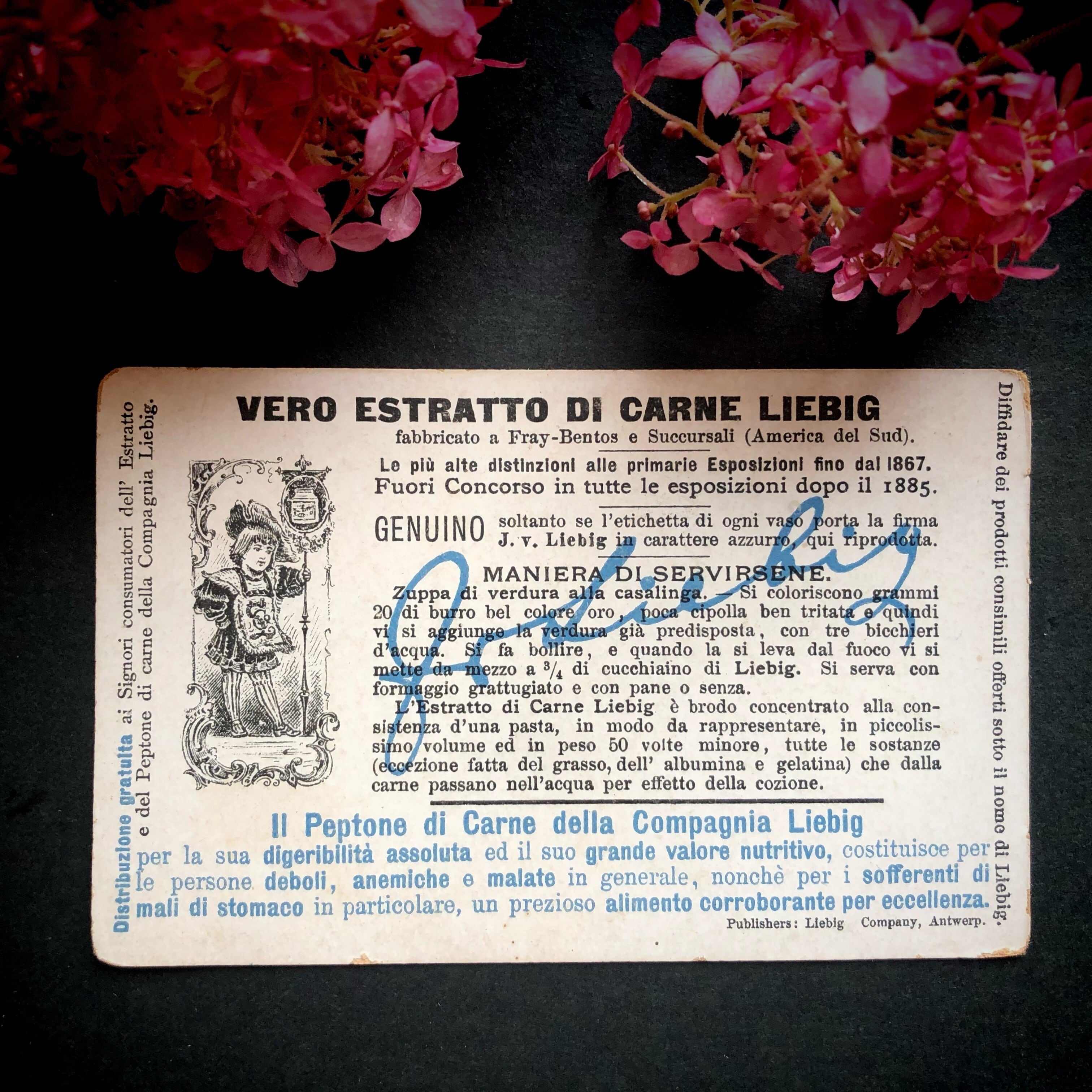 リービッヒ冷却管に名を残す19世紀ドイツの高名な化学者リービッヒが、ある時、肉エキスを考案しました。当初、栄養補助食品のつもりだったのですが、直後の研究でほとんど栄養価が無いことが判明します。しかし、そのエキスは美味だったため、売れました。そこでリービッヒはロンドンに会社を作り、ヨーロッパ各国に向けて肉エキスの販売を始めたのです。これは歴史上、加工食品のはしりと言われており、今でいう「スープの素」のようなものだったのでしょう。