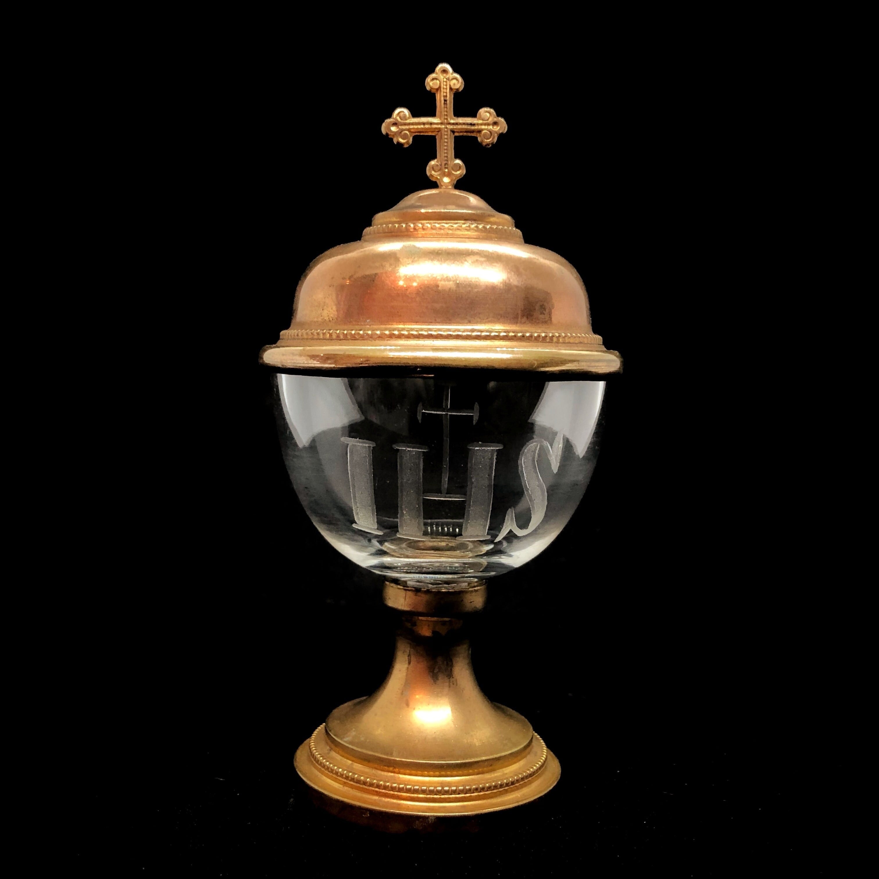 こちらはチボリウムという聖体(通常はホスチアと呼ばれる無発酵の聖パン)を入れる容器で、聖体拝領などで司祭が聖体を授ける際に使うものです。