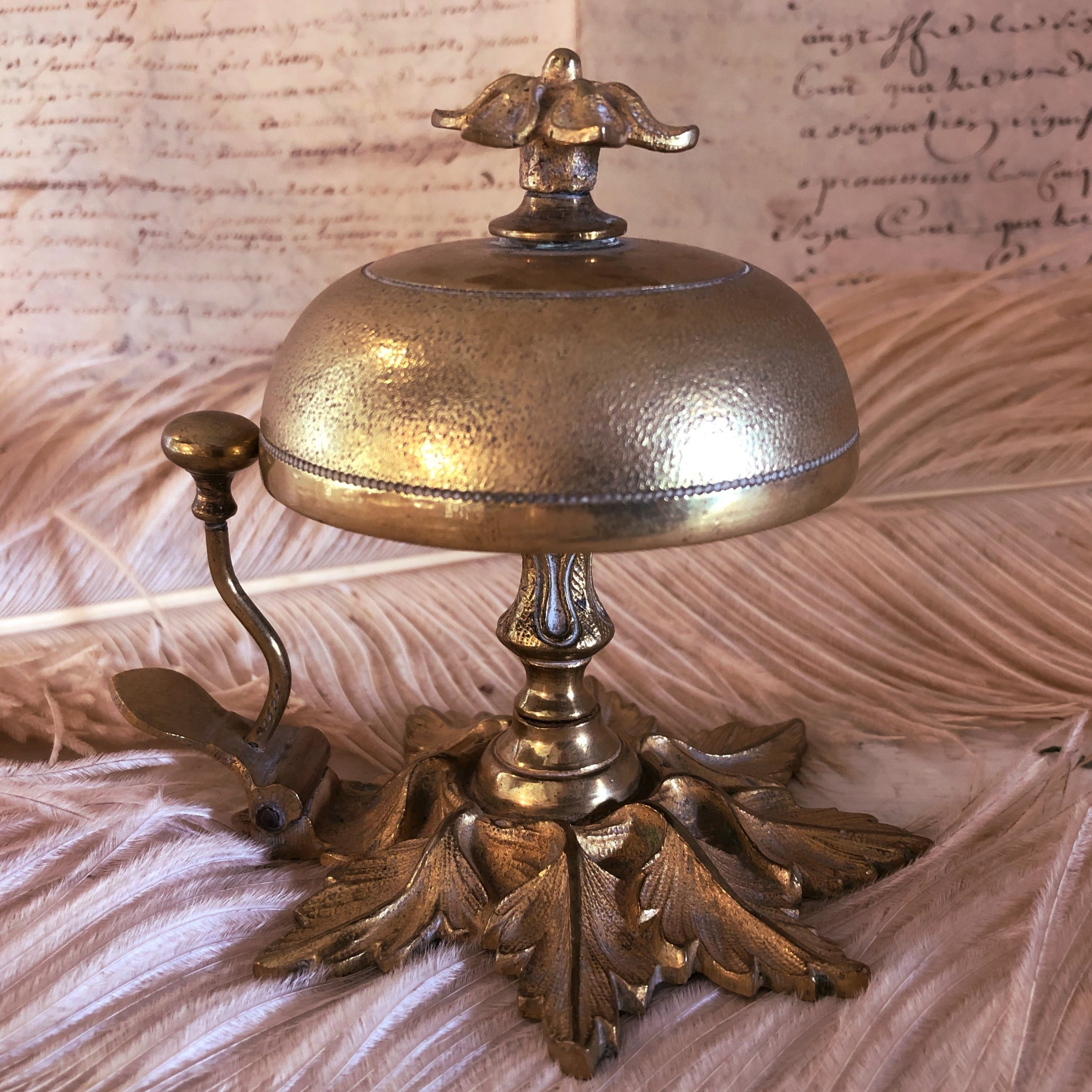 ブロンズのテーブルベルはいかがでしょうか。そうです、あのベルです! 一度鳴らしてみたかったんですよね……鳴らしても誰も来ませんが。このロココ調のデザインは、セカンドエンパイア(第二帝政期)に流行した様式です。良い音で実用可能。