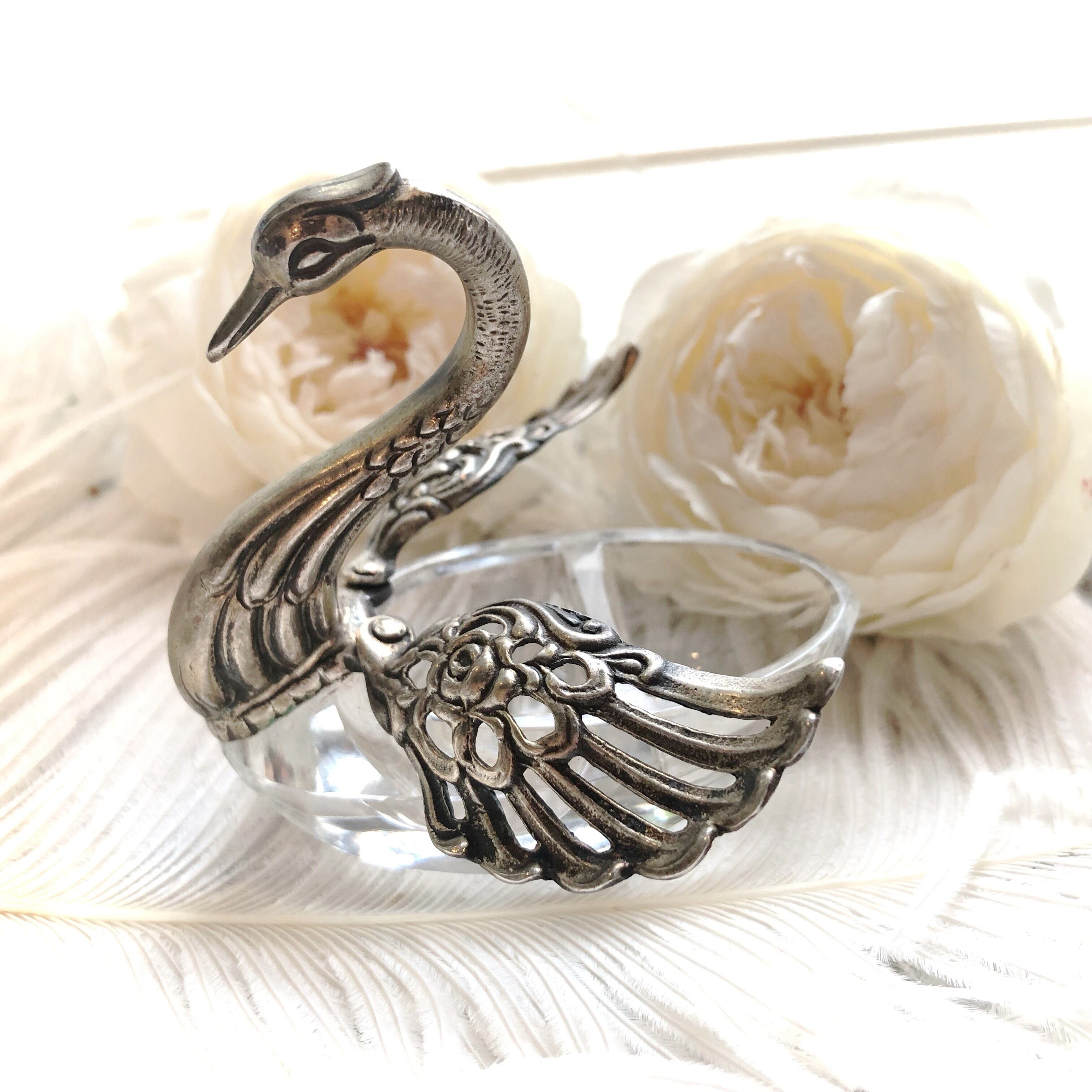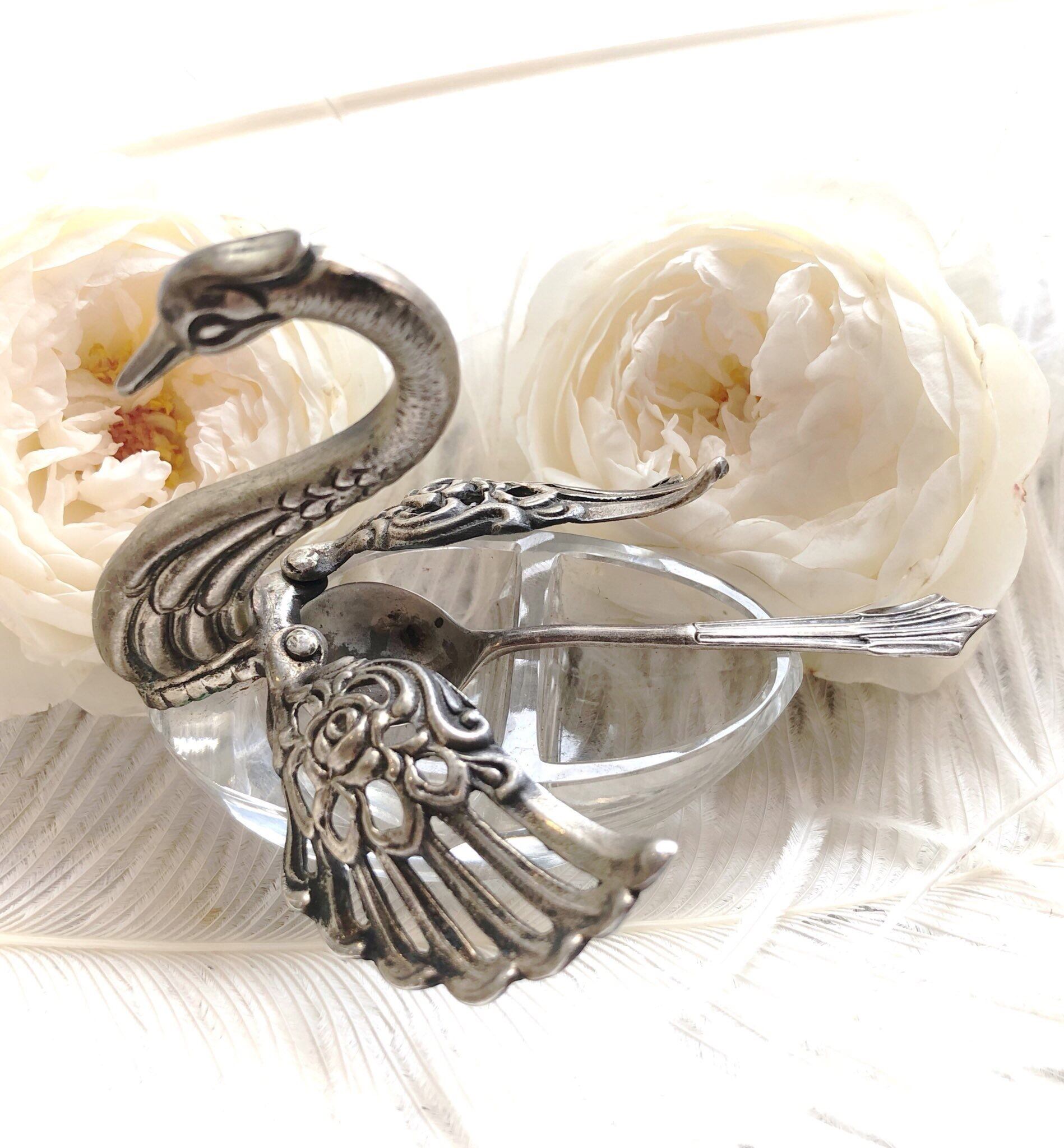 白鳥の塩入れはいかがでしょう。素材はクリスタルガラスにシルバー835のようです。羽が開閉し、ガラス部分は2つのパートに分かれています。おそらく塩と胡椒を入れる為でしょう。実に美しい細工ですが同時に実用的で、首の部分が持ち易い取手にもなっています。