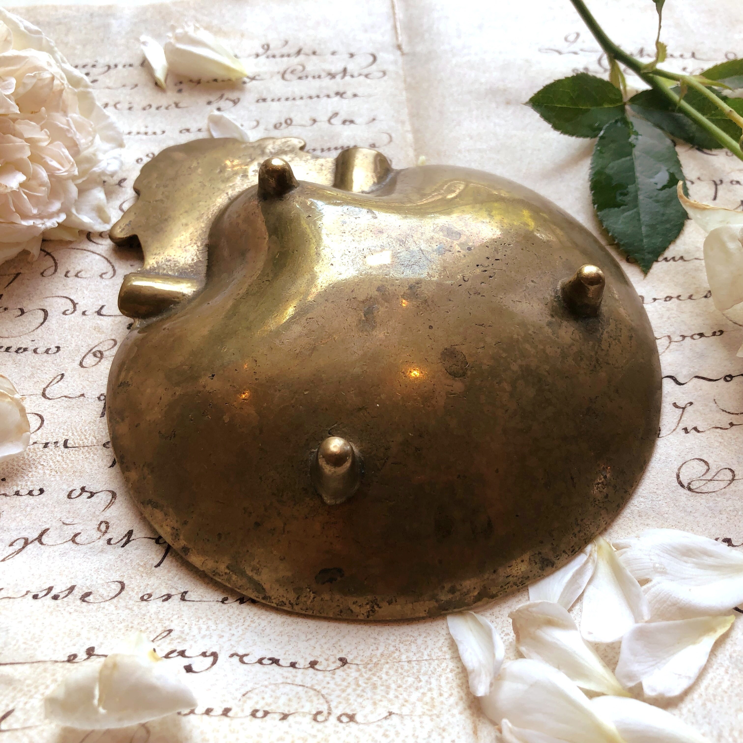 ホタテガイのトレイです。製作年の詳細は不明ですが、滑るような鈍い質感の真鍮が、時を経て本当によい感じで、古いものだと思います。金属の厚みも十分で、どっしりとした重厚さもあります。
