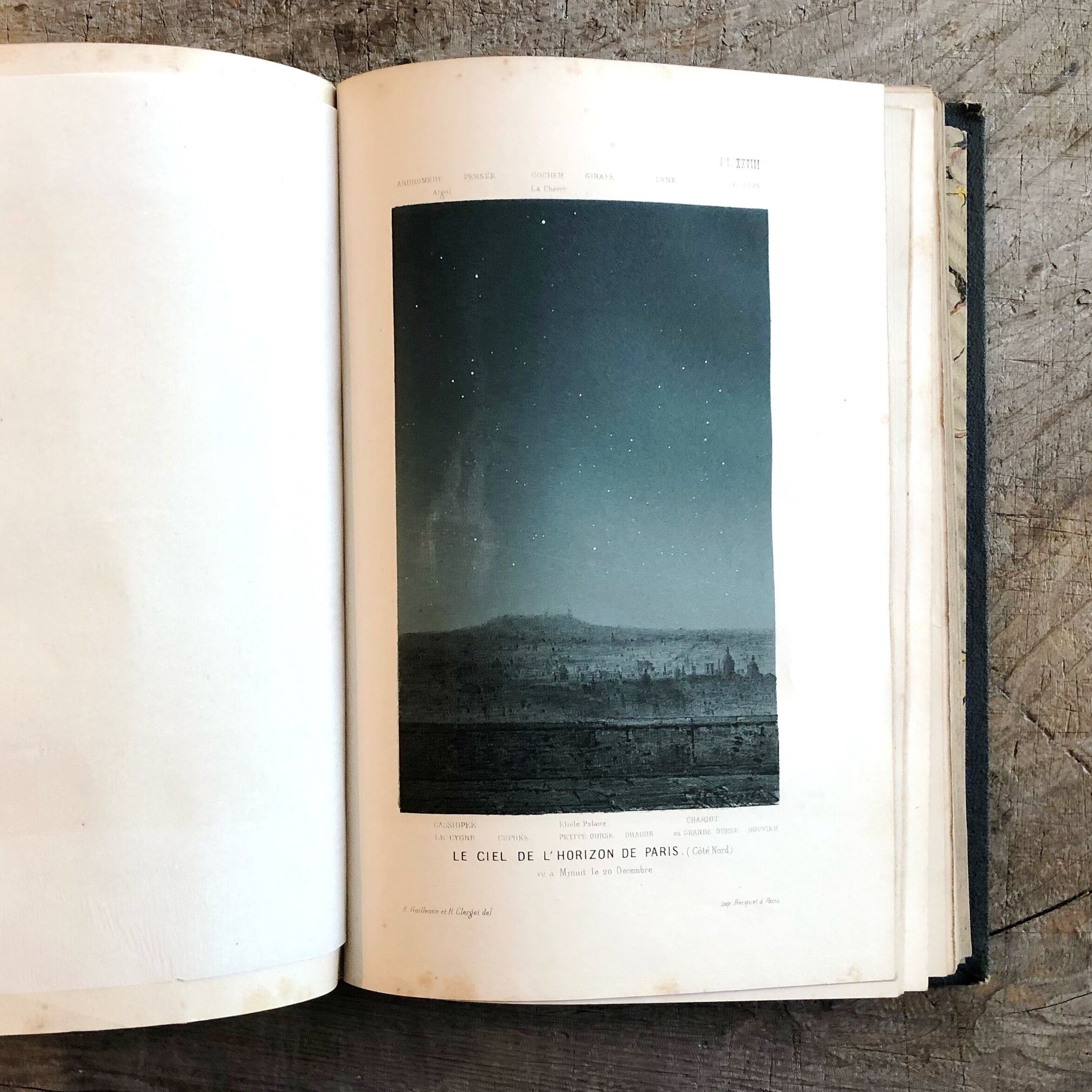 こちらは "Le Ciel" という19世紀フランスの一般向け天文書です。太陽、月、惑星、彗星などそれぞれの星について、夜空の星の位置、黄道光など天文現象と様々なことについて幅広く説明され、多くの図版が入っています。