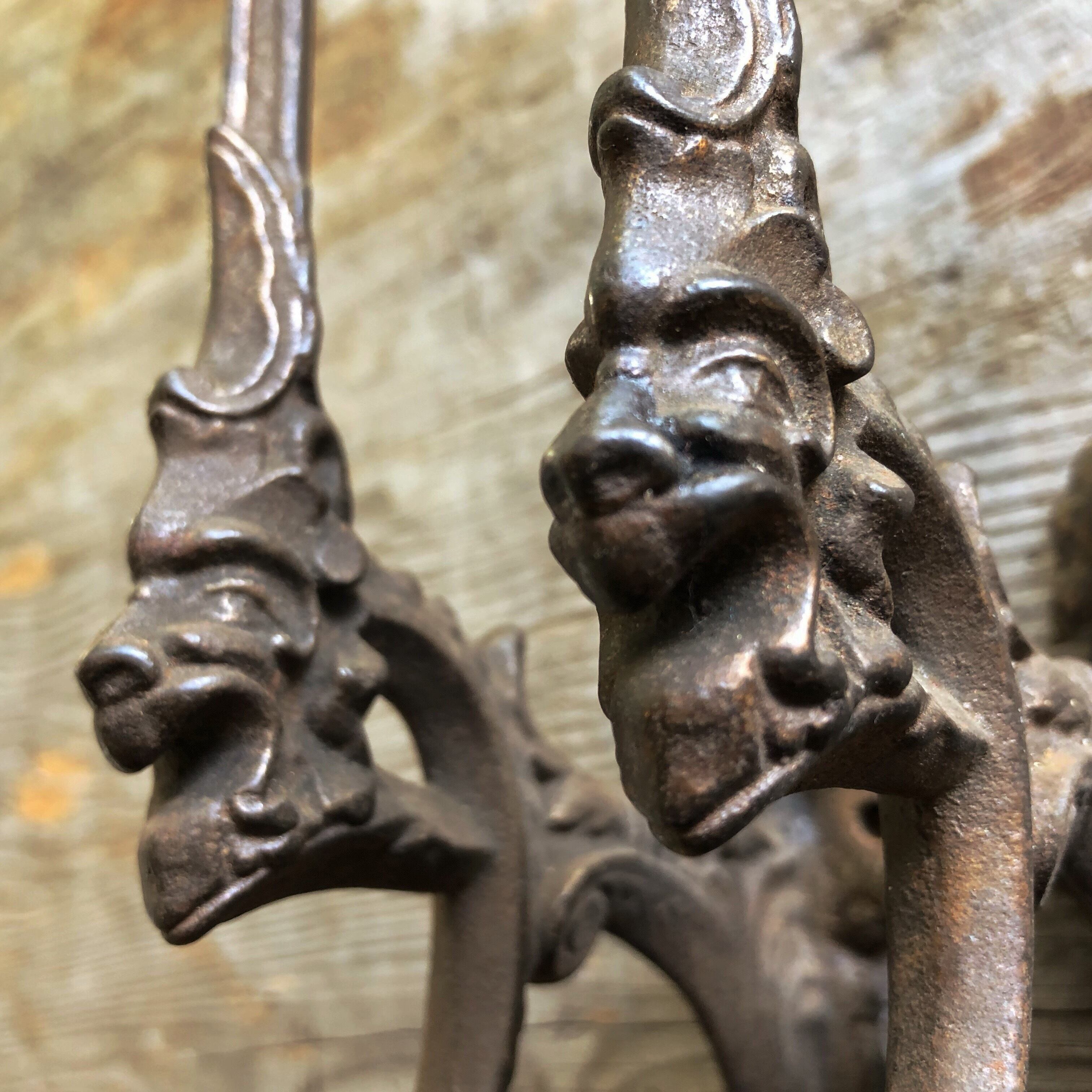 ガーゴイルの意匠の鉄製フックです。全体に装飾も施されおり、時を経て古びた風合いが生き生きとしたガーゴイルと相まってとてもよい感じです。