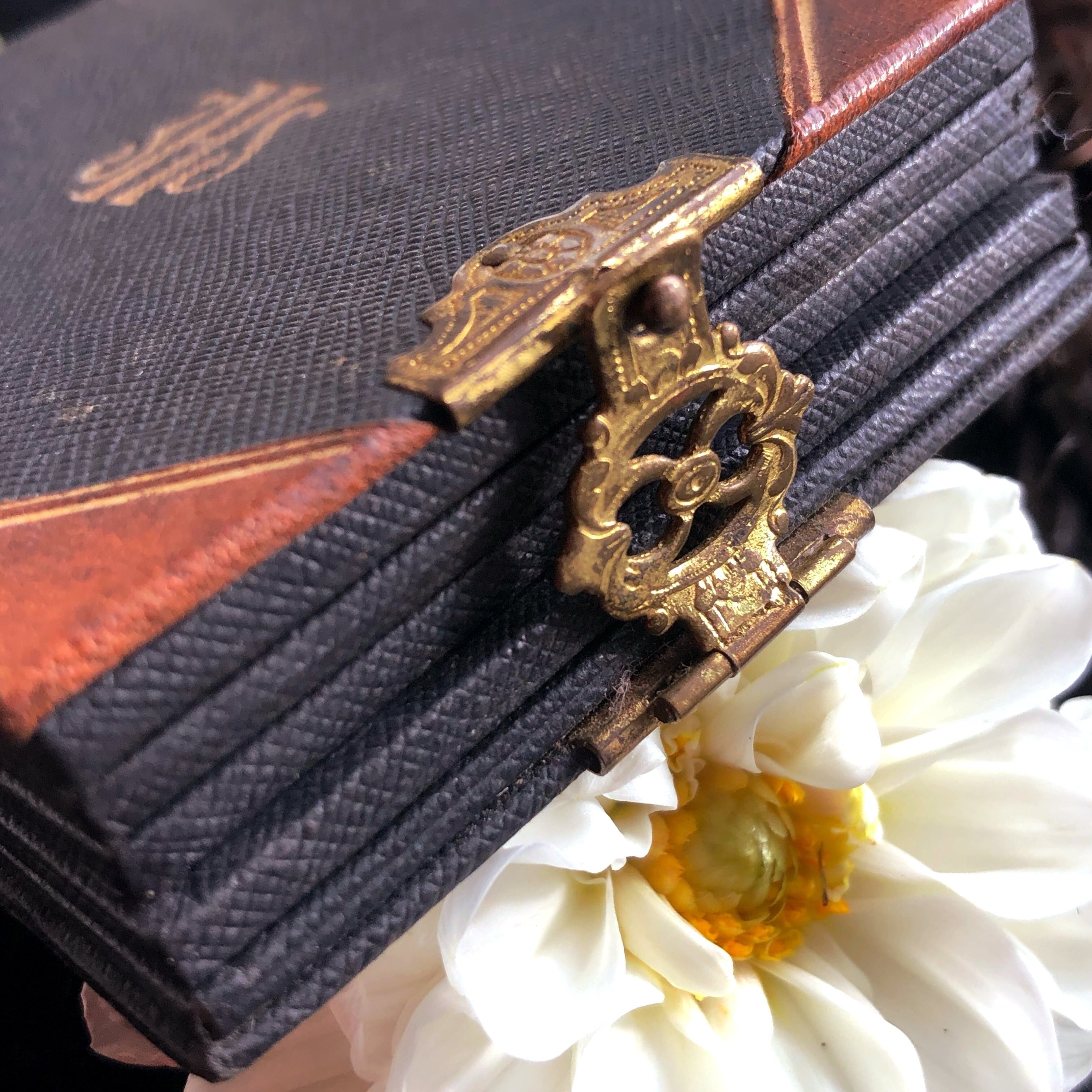 古いものですので、絵の銀紙に傷みが、全体に若干の汚れがあります。口金は少し反りがありますが、きちんと閉まります。