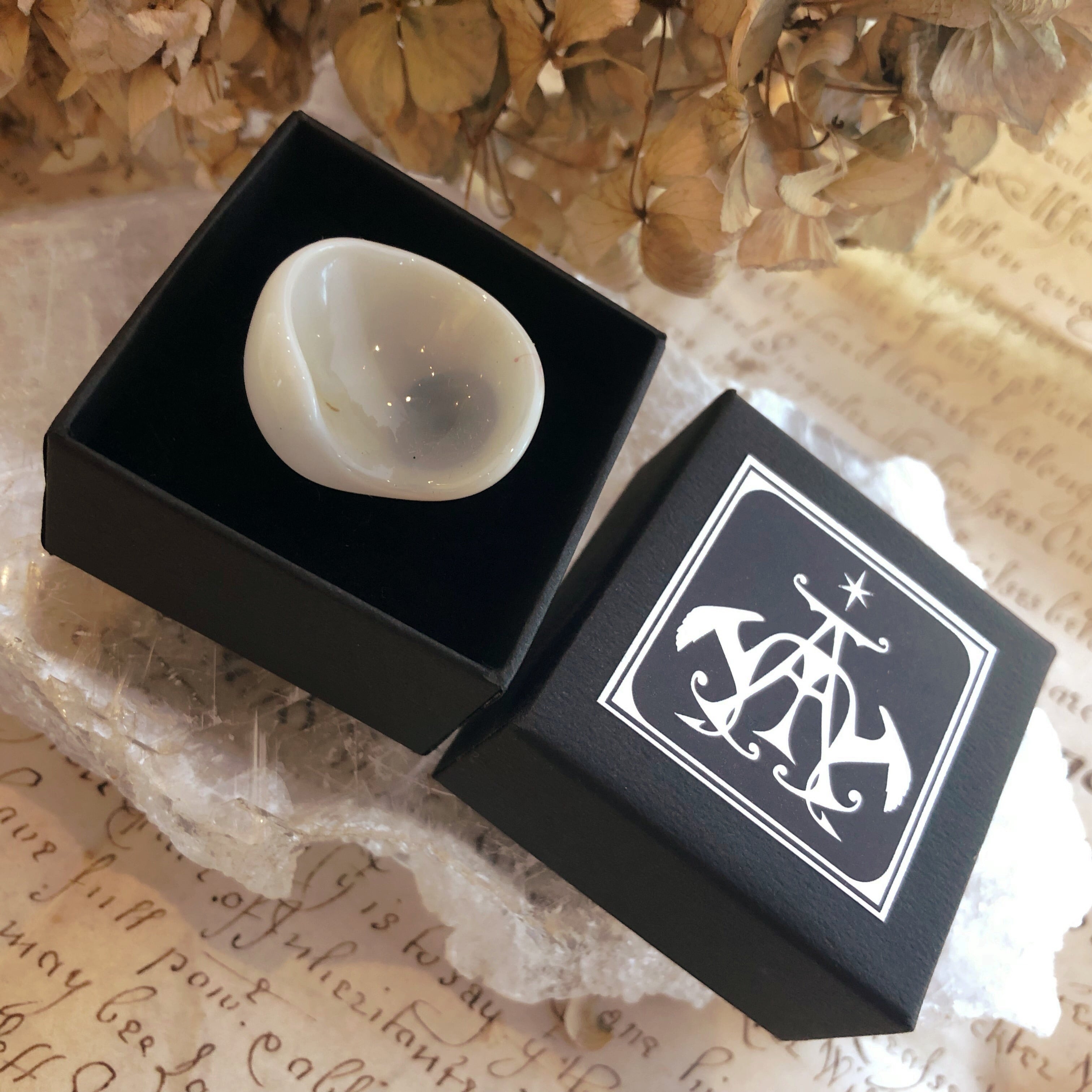 ドイツ製、製作は19世紀末から20世紀初頭です。今回、箱作家さんによる手作りの義眼専用箱が品切れのため、弊店の別のデザインの紙箱に入れてお届けします。そのため、品物はこれまでと同様のものですが、お値段をお引きしてあります。箱は一辺約4.5センチですので、サイズの目安にしてください。