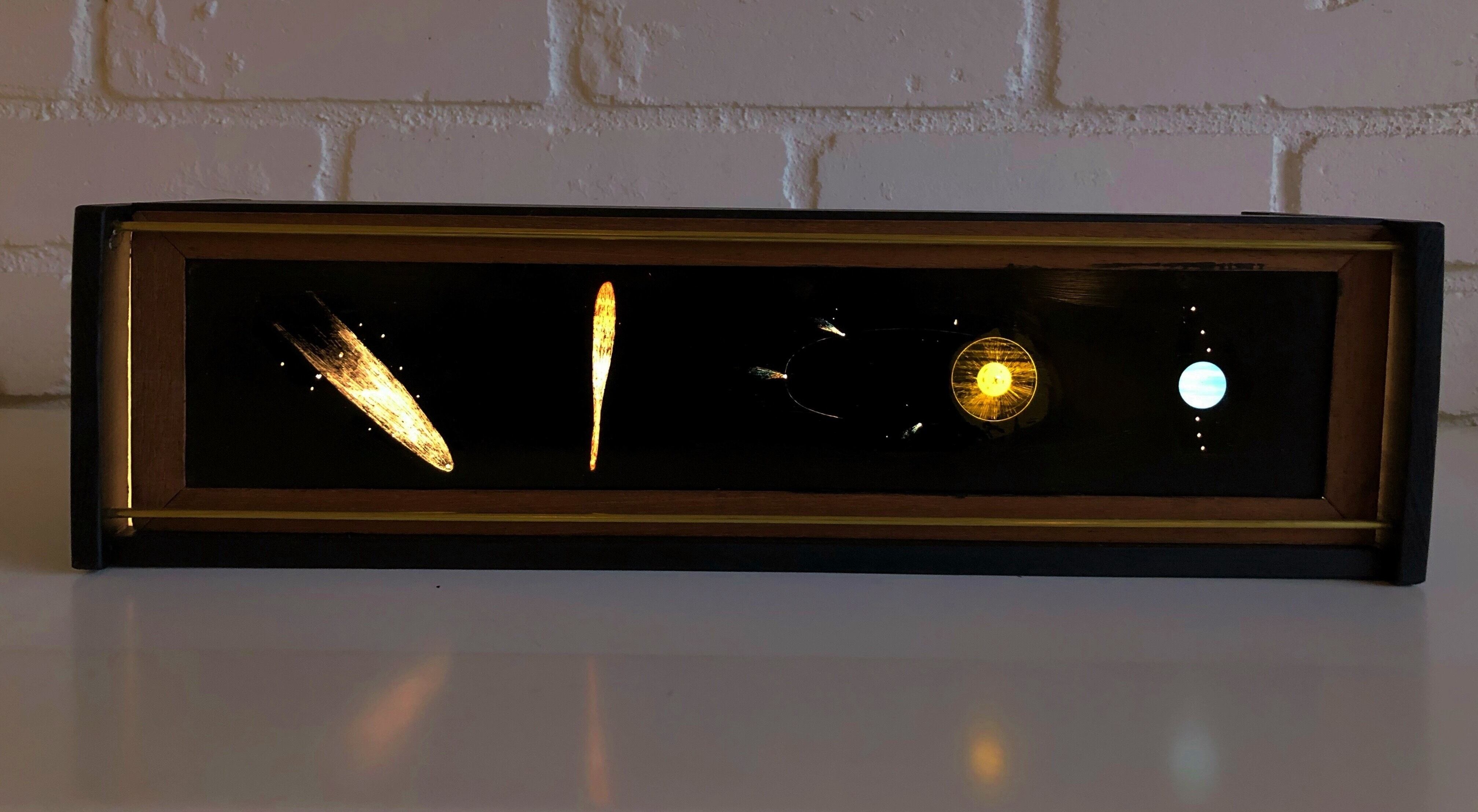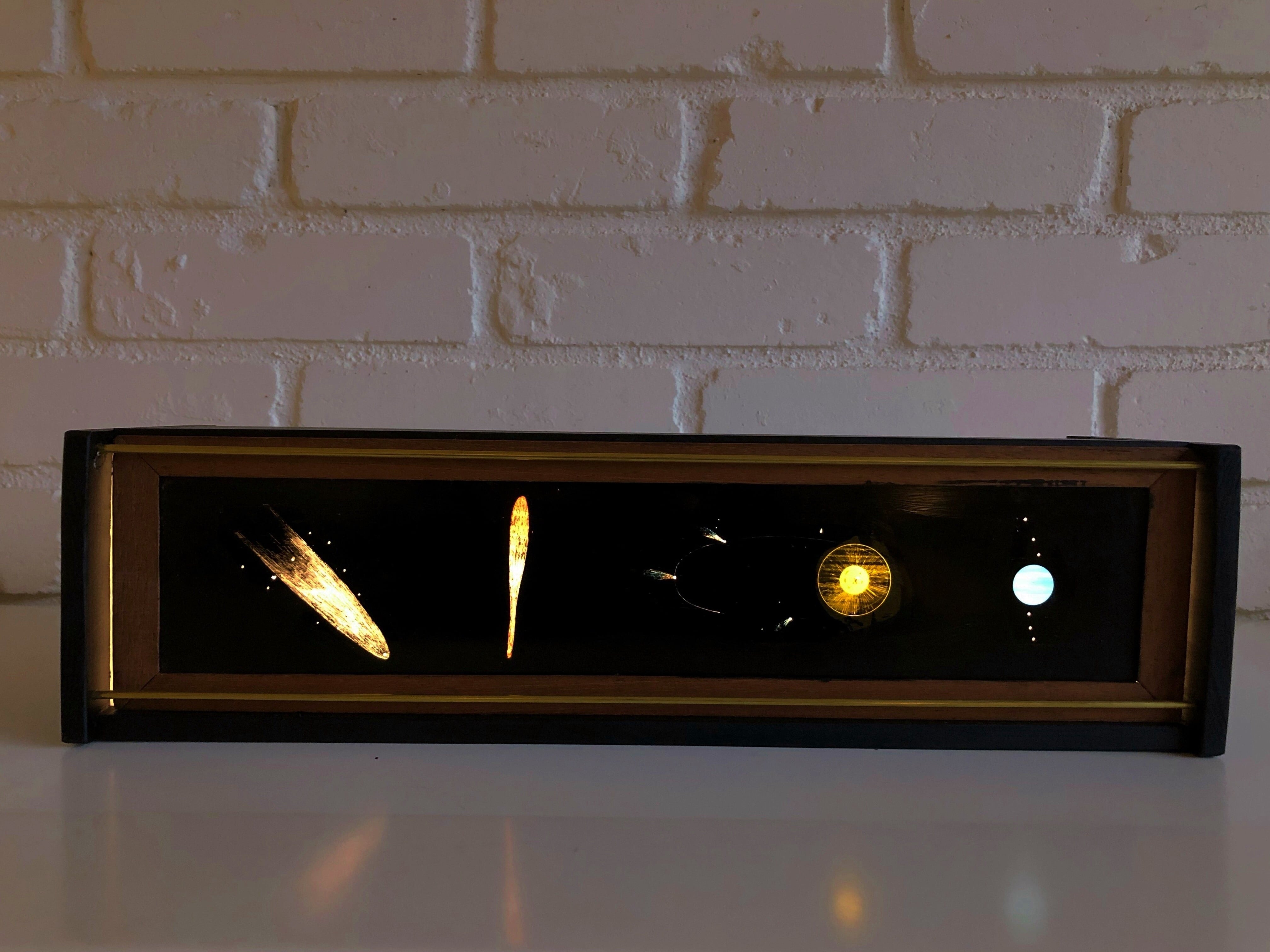 19世紀は多くの彗星が出現した、正に彗星の世紀でした。こちらは、19世紀から20世紀にかけて天文学の講義などで使われた幻灯機用のガラススライドです。当時はテレビやモニタが無いので、幻灯機で大きく映して説明をしたのでしょう。今では使い道の無い技術ですが、スライドは美しいものが多く、コレクションにもぴったりです。
