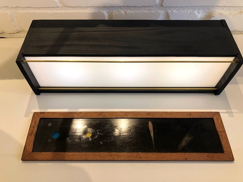 このガラススライドを美しく見る為の幻箱も、それぞれサイズに合わせてレギュラー、中型、大型と別途販売いたします。知的なインテリアや間接照明としてもお楽しみ頂けます。こちらのスライドを展示するためには「大型」の幻箱をお選びください。