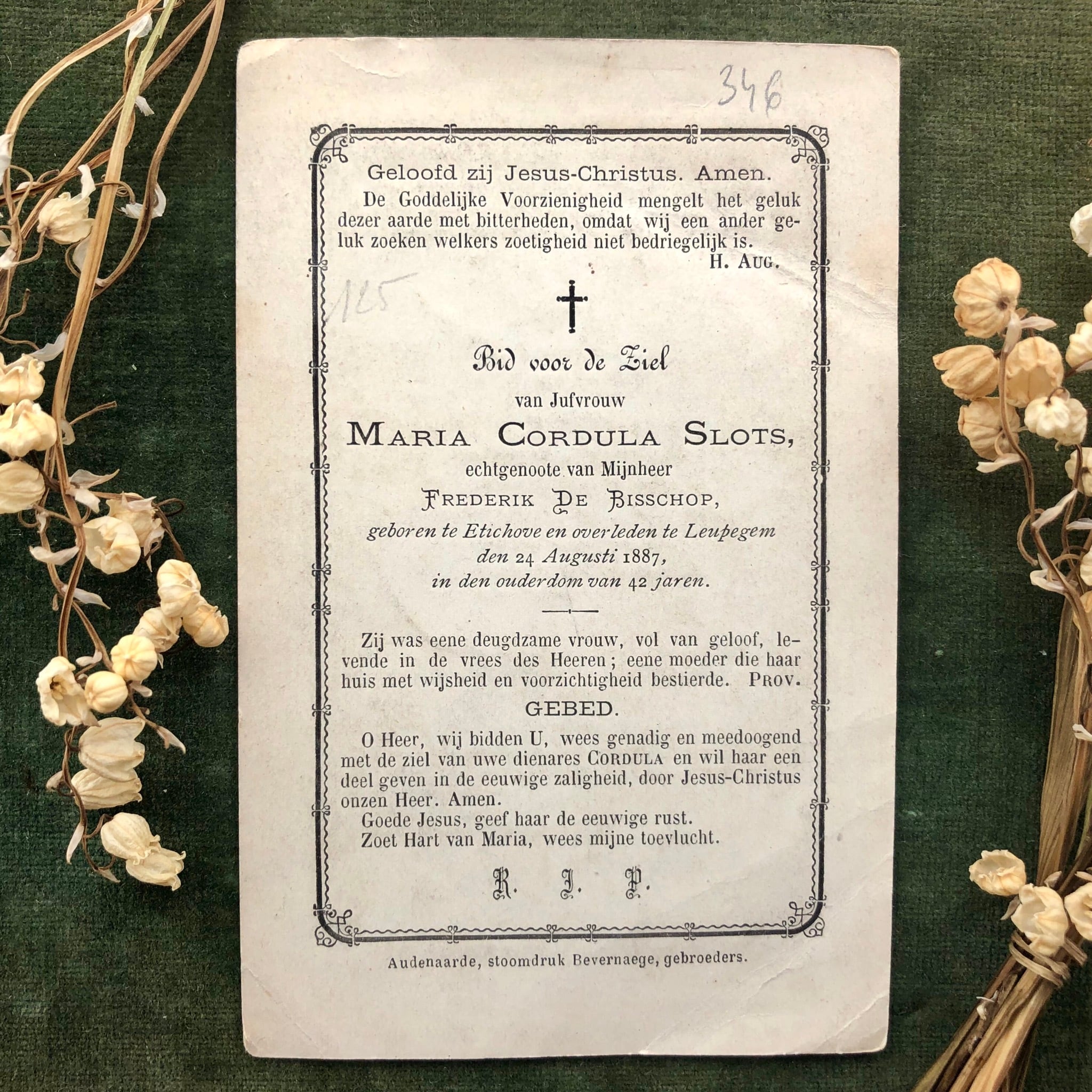 時々古い聖書に挟まっていますが、これはお葬式の時に記念に配られ、それを聖書に挟んだままにしておき、時々見返して故人を偲ぶ為だと思われます。