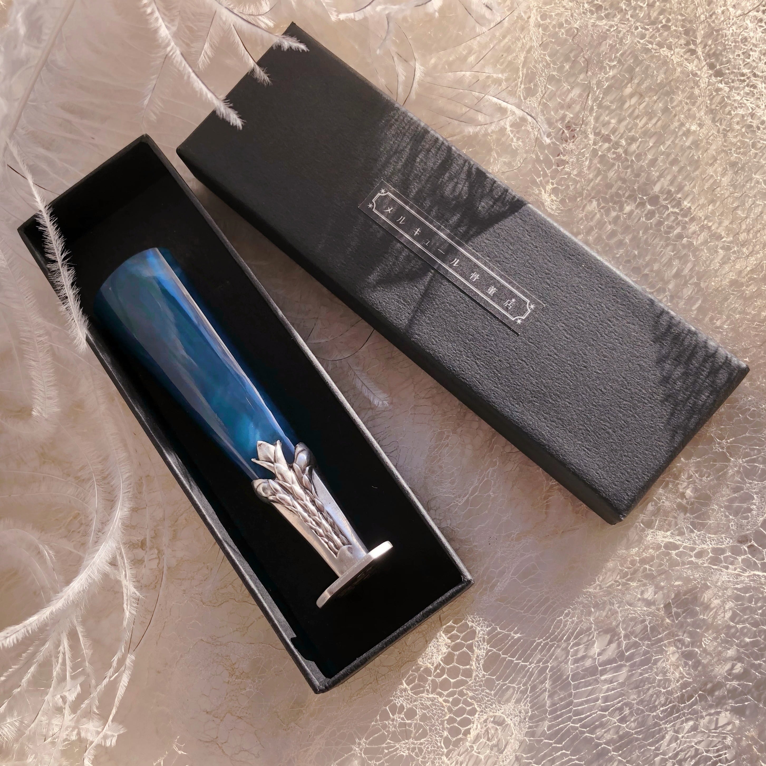 アール・ヌーヴォーの印章で、持ち手は吸い込まれるように美しい青瑪瑙です。濃い青から白色まで、流れるような模様が不思議な雰囲気さえ漂わせます。