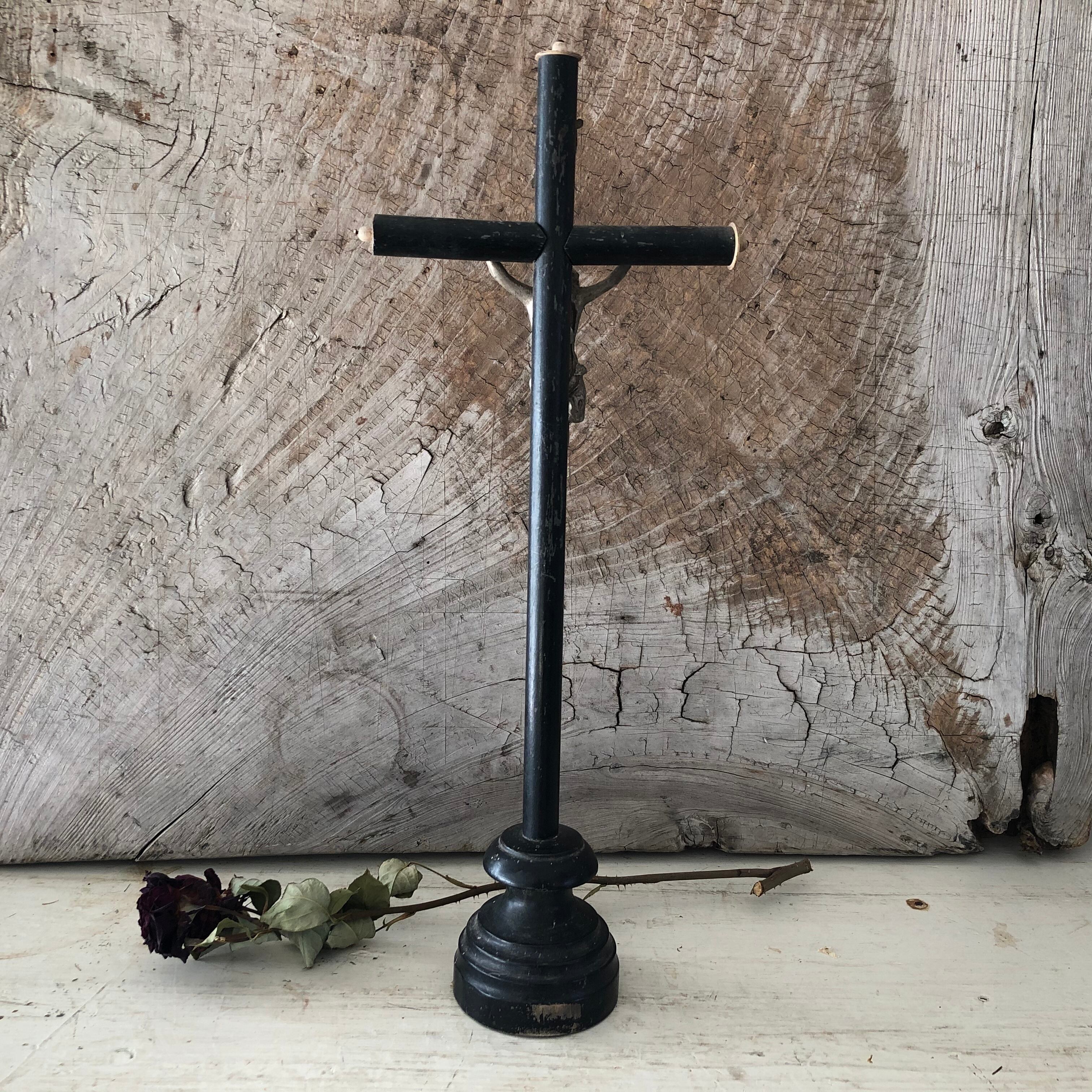19世紀フランスの卓上十字架はいかがでしょう。コレクションと合わせてミニ祭壇コーナーを作るのも素敵ですし、クリスマスツリーは飾れないというお宅でも、十字架があればクリスマスらしくなりますよね。派手ではありませんが静謐な気品があります。こちらのお品のキリスト像は口を閉じ、静かに虚空を見遣るような表情です。