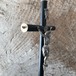 キリスト像は重みのある金属製で約8.5×12センチ、台座は木製で約17.5×43センチです。