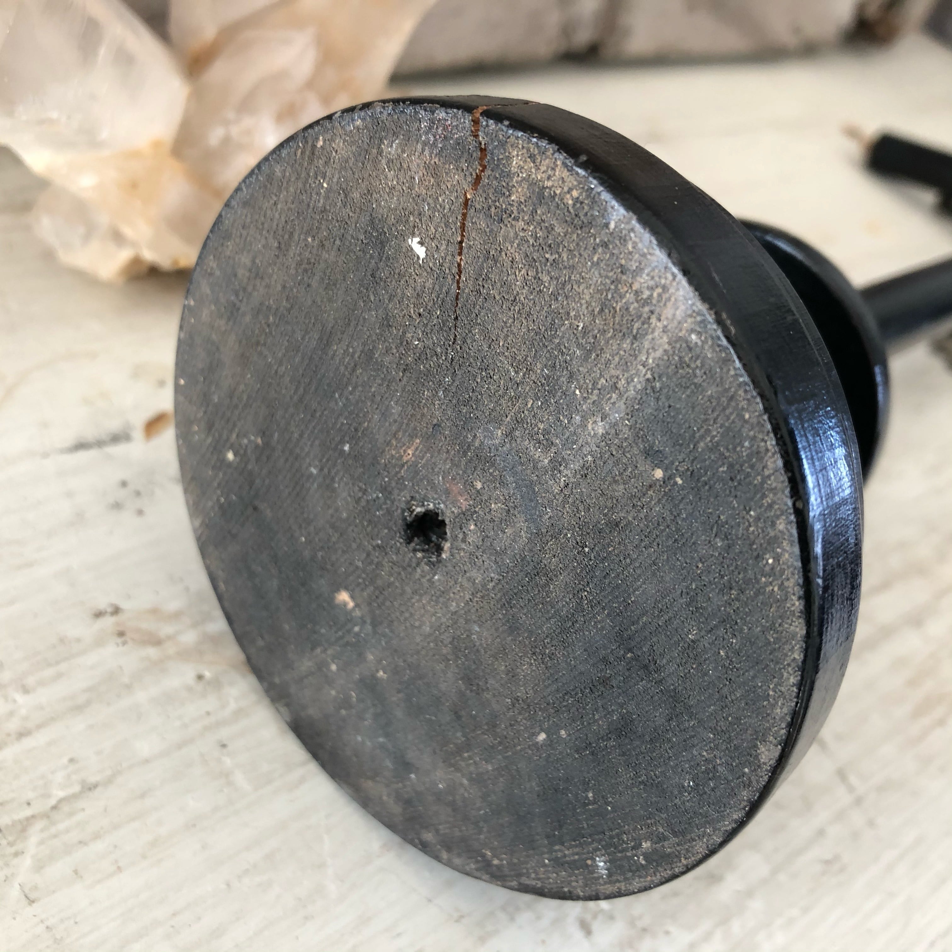 古いものですので全体に汚れ、傷があり、台座の後ろ側に割れがありますが、すぐに崩壊するような状態ではありません。