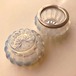 オパールセントガラスの塩入れはいかがでしょう。順光で見ると青白くぼんやり光って見え、逆光で見るとオパールのようなゆらゆらした遊色が現れます。この美しさは写真では分からないので、ぜひお手元でご覧下さい。本来は塩胡椒を入れるものですが、アクセサリーなどを入れてもよいと思います。