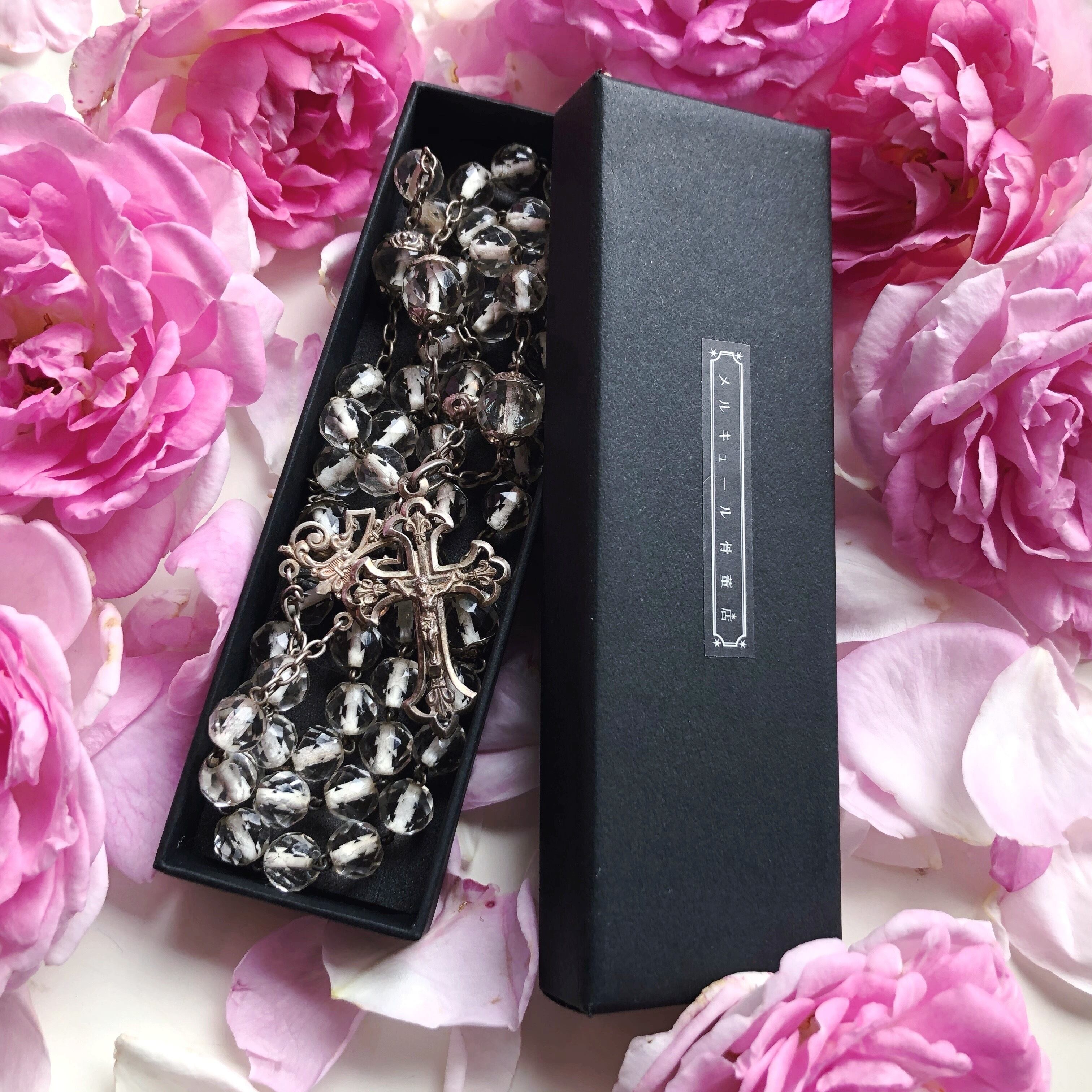 本来、ロザリオは首からかけるものではないのでチェーンを切り離す環がついておりませんが、こちらのお品はチェーンの長さが約65センチありますので、首からかけていただくことができるかも知れません。