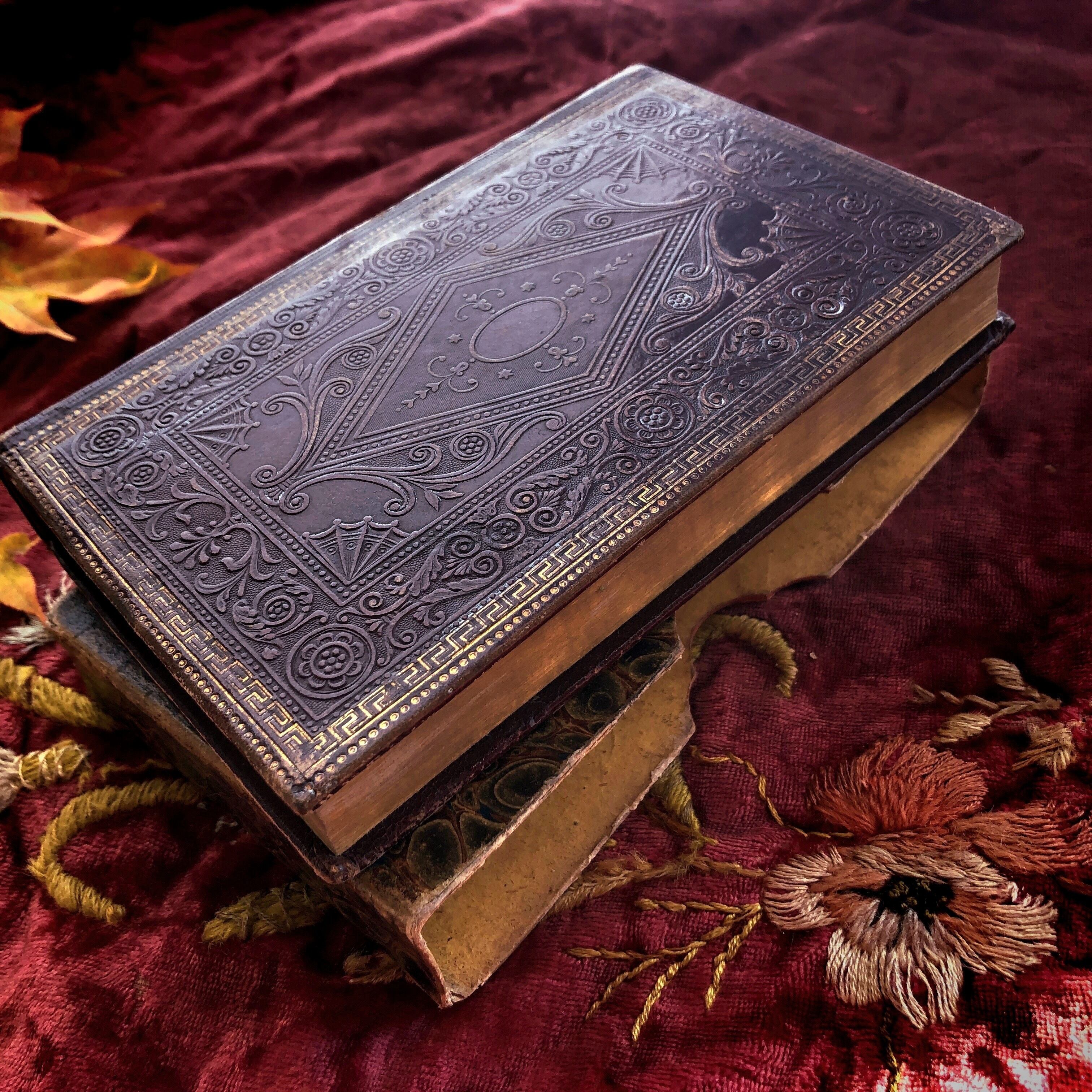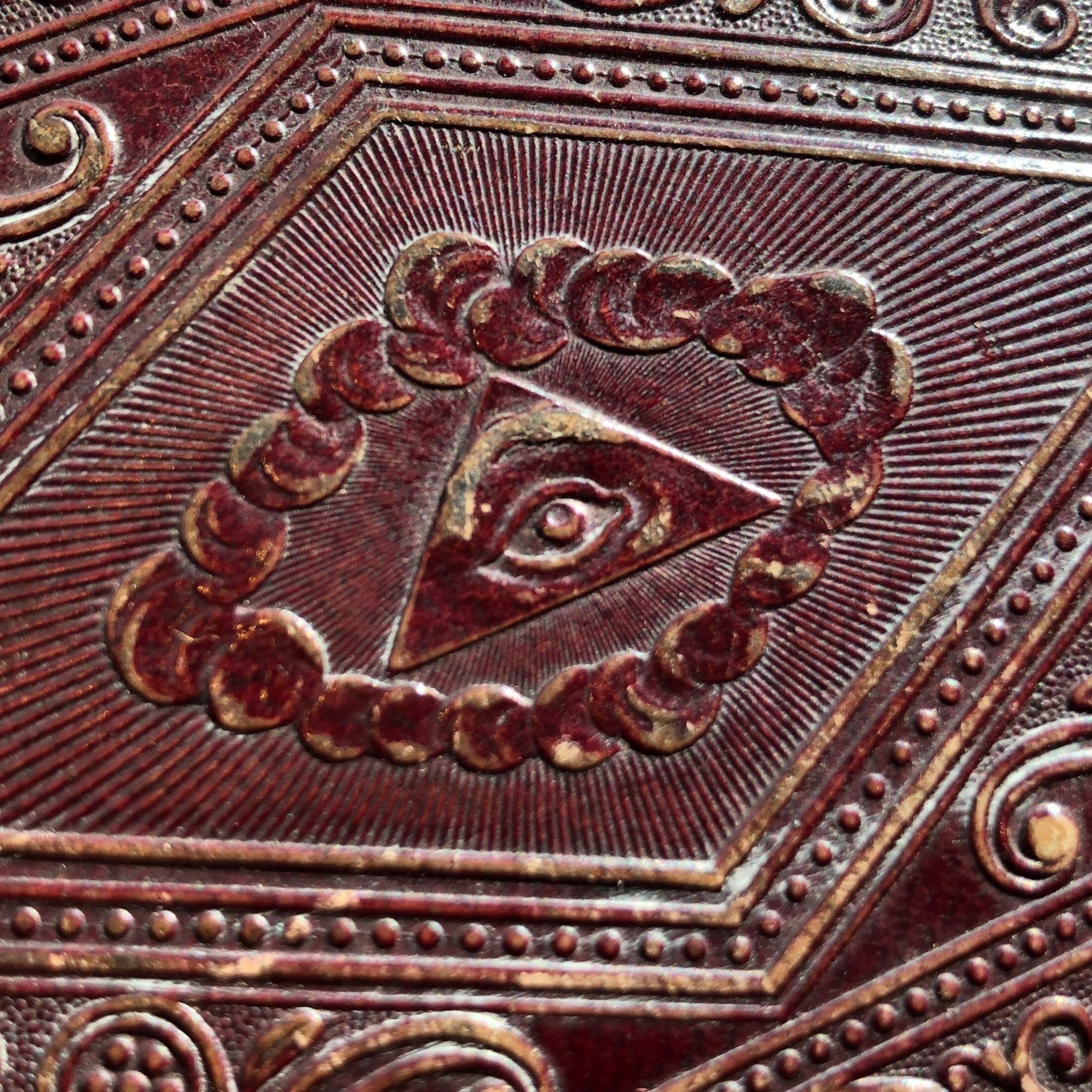 19世紀、書籍の出版業者と製本業者はそれぞれ独立した別の職種であり、仮綴で出版されたものを自分の好みに製本することもあったのです。このイエス様についての内容と思われる書籍を装丁するにあたり、この人は「神の全能の目」を選んだのでしょう。専用の箱まで誂え、艶のある革に手の込んだ箔押し、金の小口も美しく、大変丁寧な装丁です。