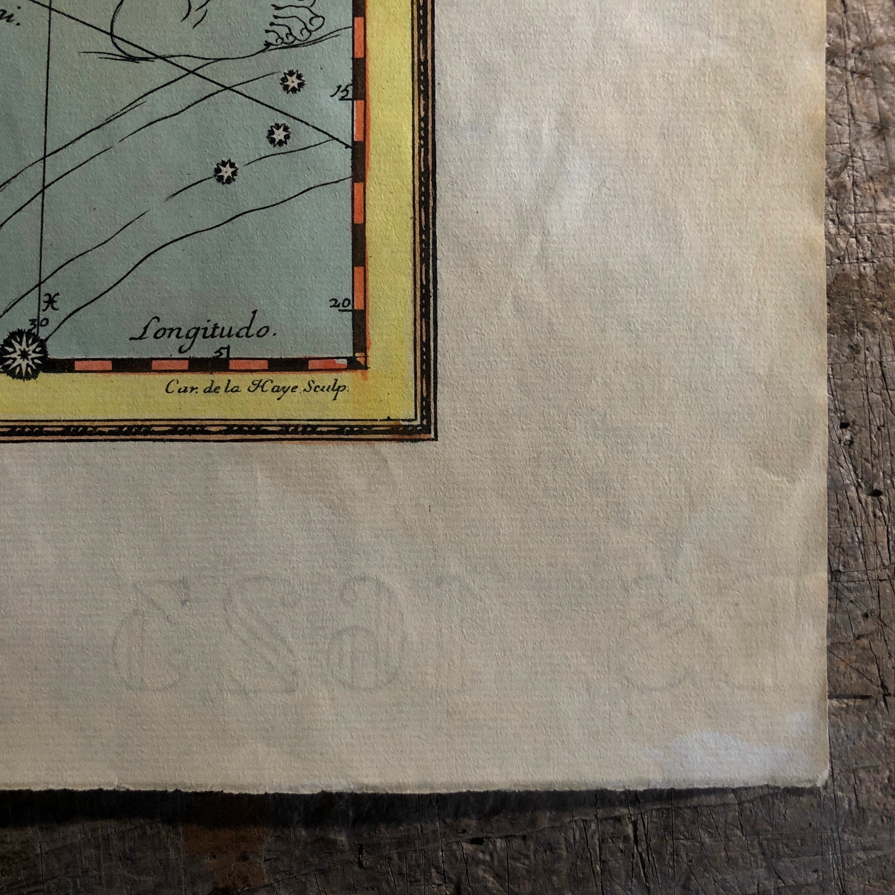 19世紀の後半から20世紀初頭までのフランス製。サイズは約52×43センチです。版の大きさについては、同シリーズの双子座の図版を手に持っている画像をご参考になさってください。
