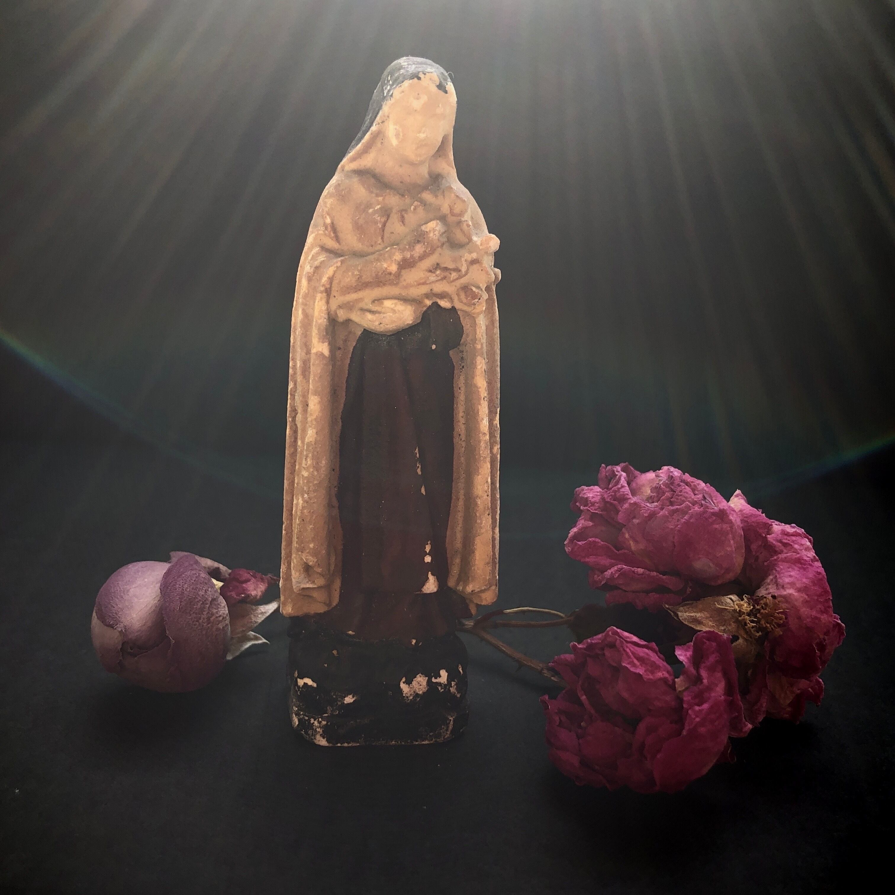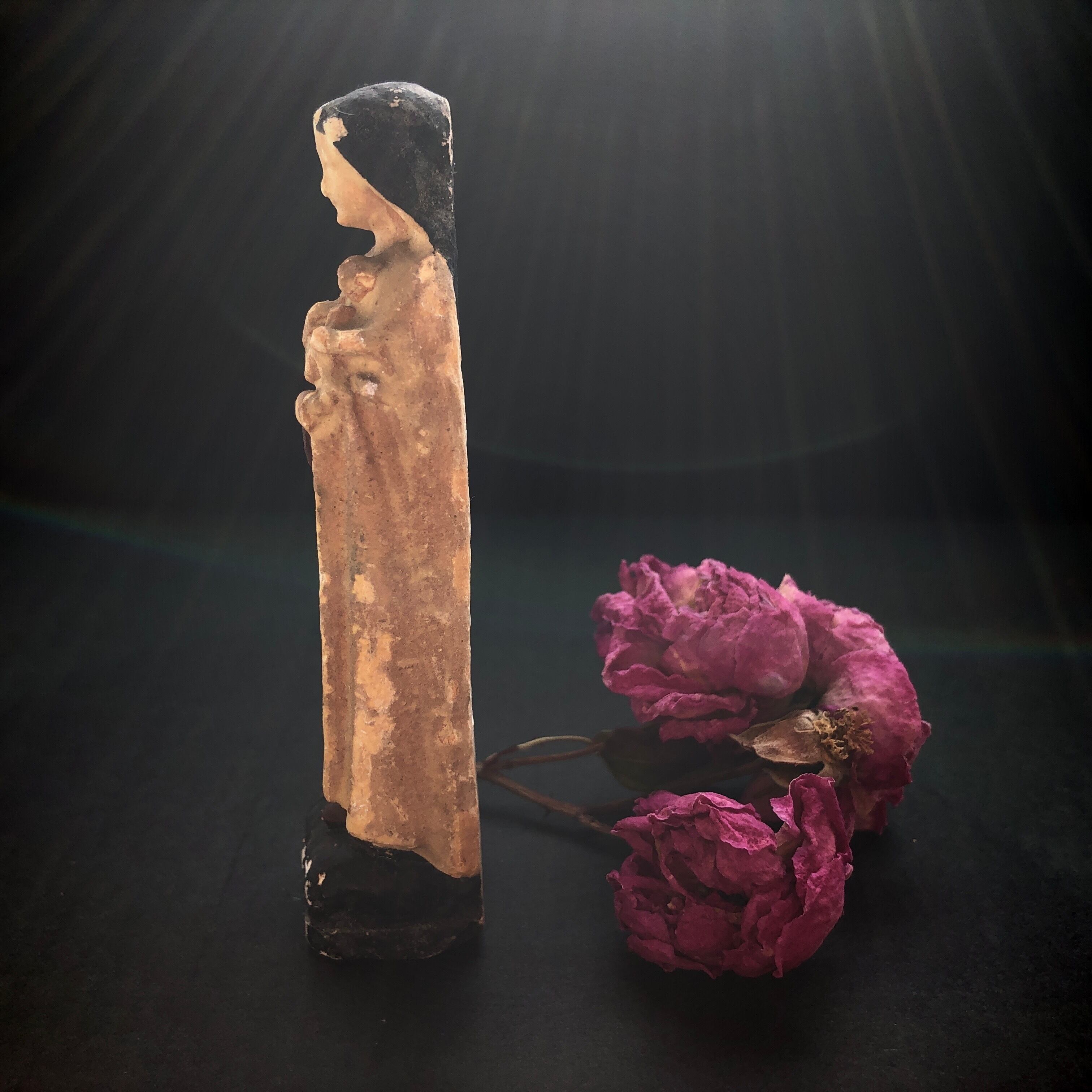 小さな聖テレーズの立像です。石膏に簡単な彩色が施され、背面のない質素な造りですが、そのお顔や全体のお姿には何か素朴な力が感じられます。