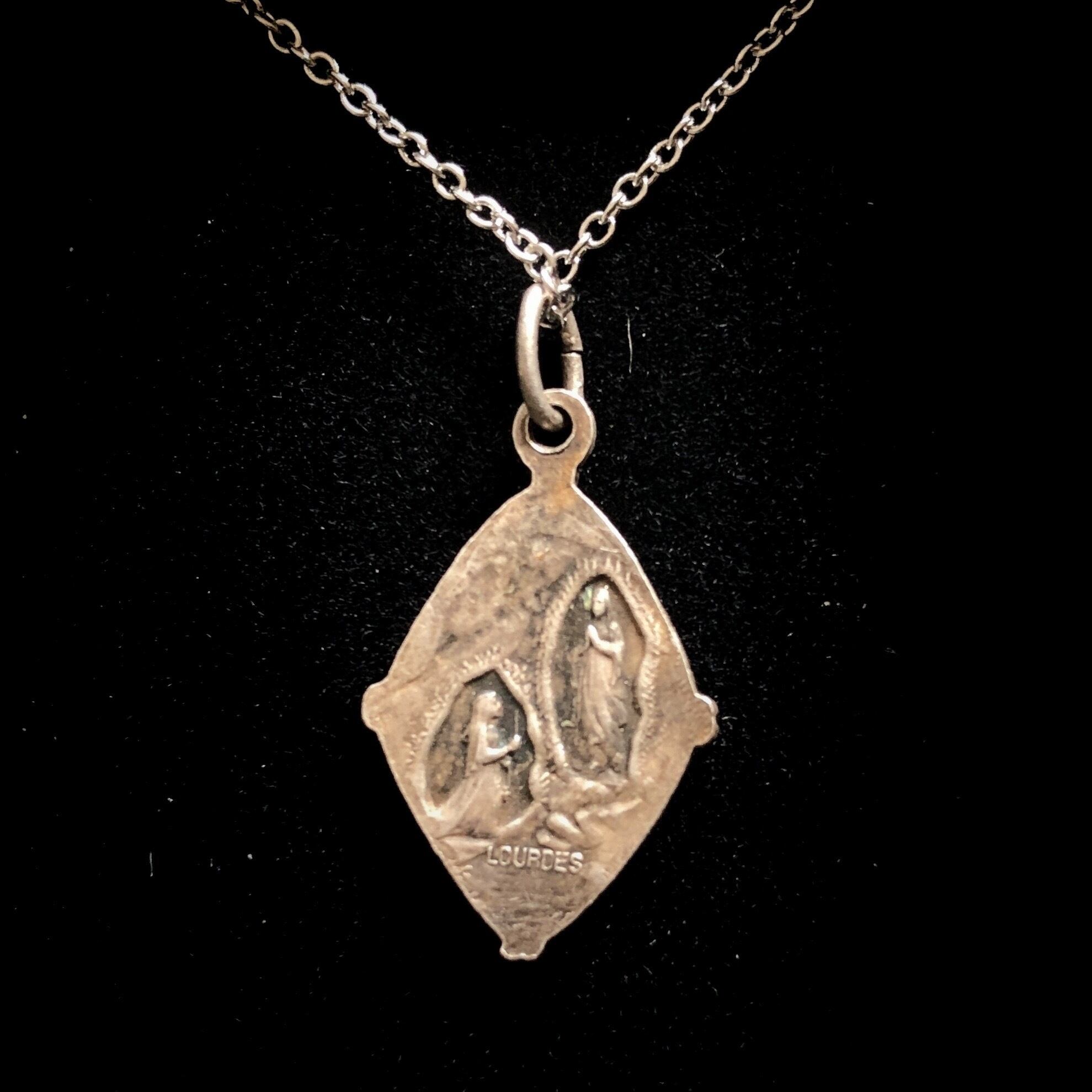 メダイはカードとほぼ同時代と思われるフランス製。サイズは約1.4×2センチ、チェーンは現行品で長さが約43センチです。