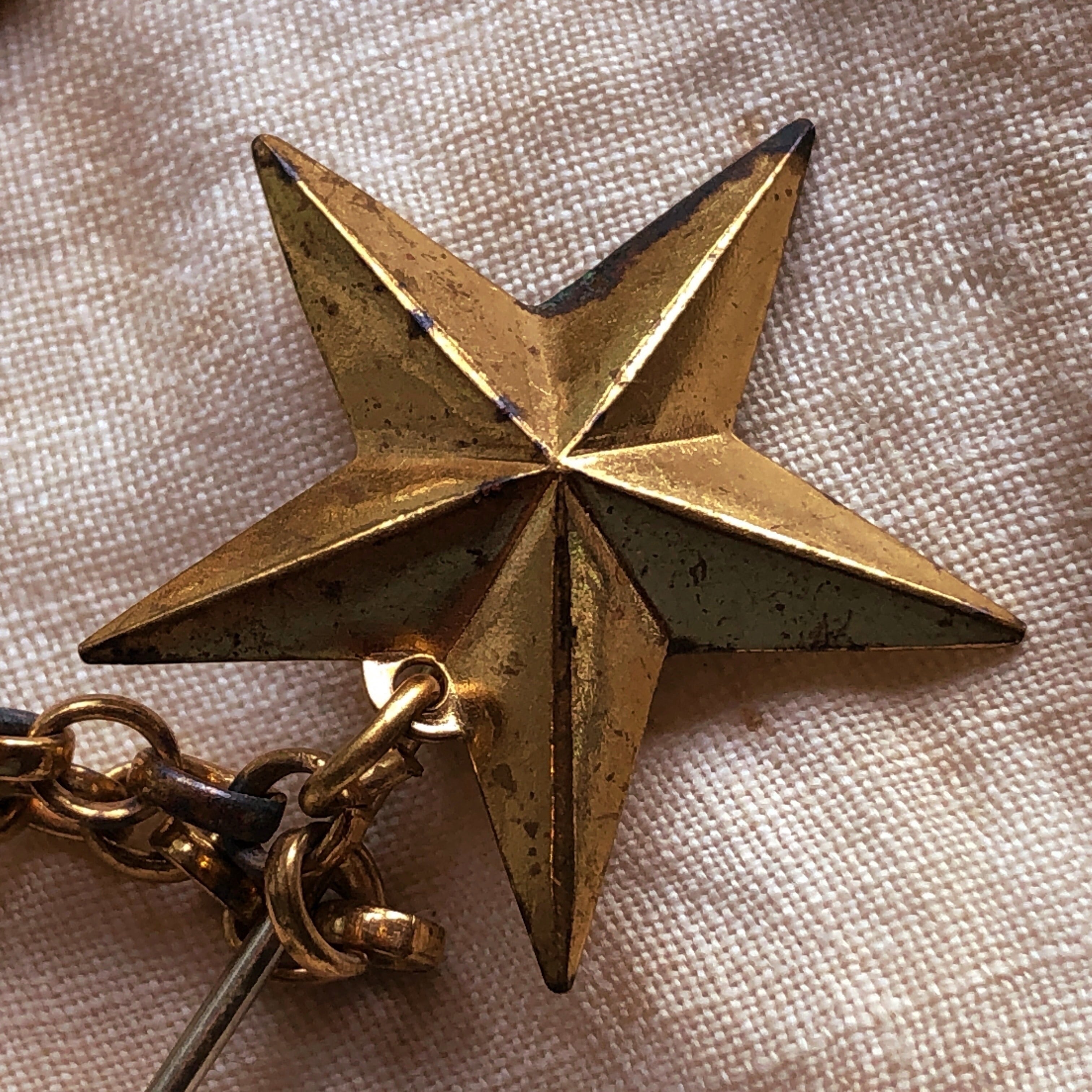 19世紀から20世紀初めの頃までのフランス製で、サイズは、フルール・ド・リスが約2.3×3センチ、星が約2.5センチ、両者を結ぶチェーンの長さが約13センチです。