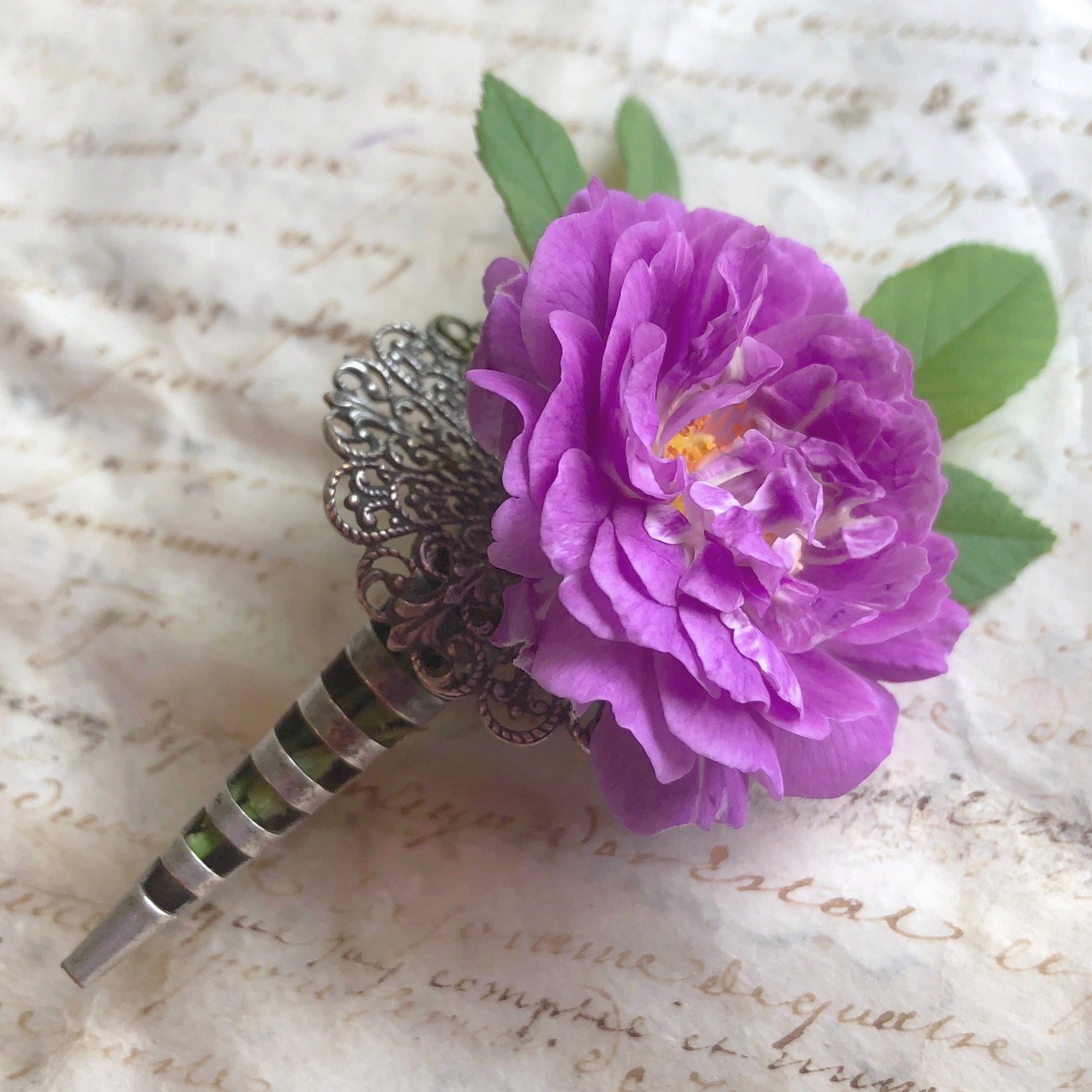 繊細な金属の透かし細工にはフルール・ド・リスも見えます。こちらは、19世紀、ヴィクトリア朝のブローチで、 "posy holder brooch" などと呼ばれる「小さな花束を挿して身に着けるためのブローチ」なのです。