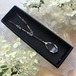 クリスタルガラスの大きな粒に、同じくクリスタルガラスのビーズを配した繊細な造りのチェーンをつけたペンダントです。クリスタルガラスは透明感があり、綺麗にカットされていますので光の加減で様々な煌めきを宿します。