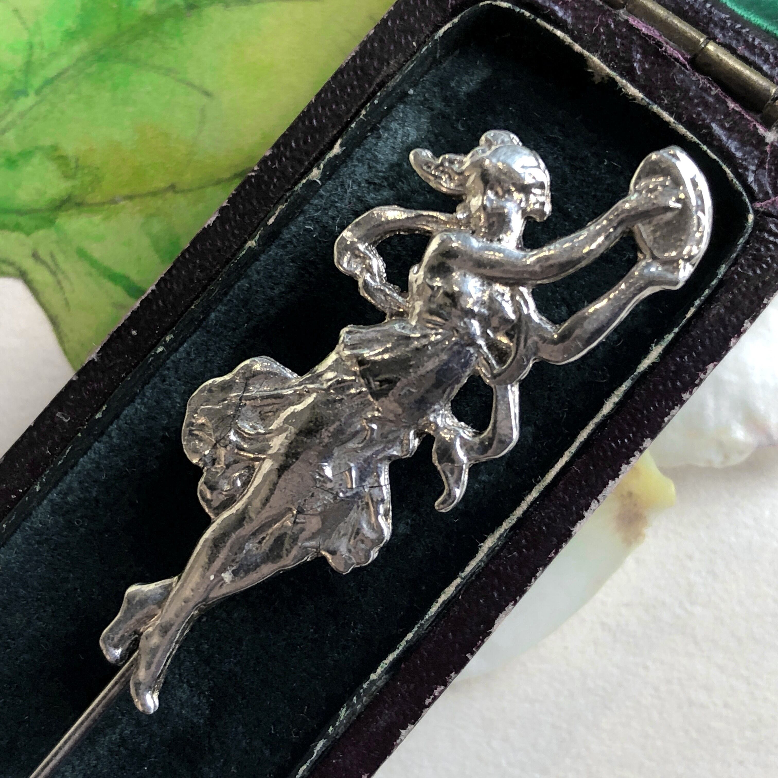 身にスカーフをまといタンバリンを手に踊る女性のピンです。その姿はヴィクトル・ユーゴーの小説「ノートルダム・ド・パリ」に登場する美しきロマの踊り子エスメラルダのようです。
