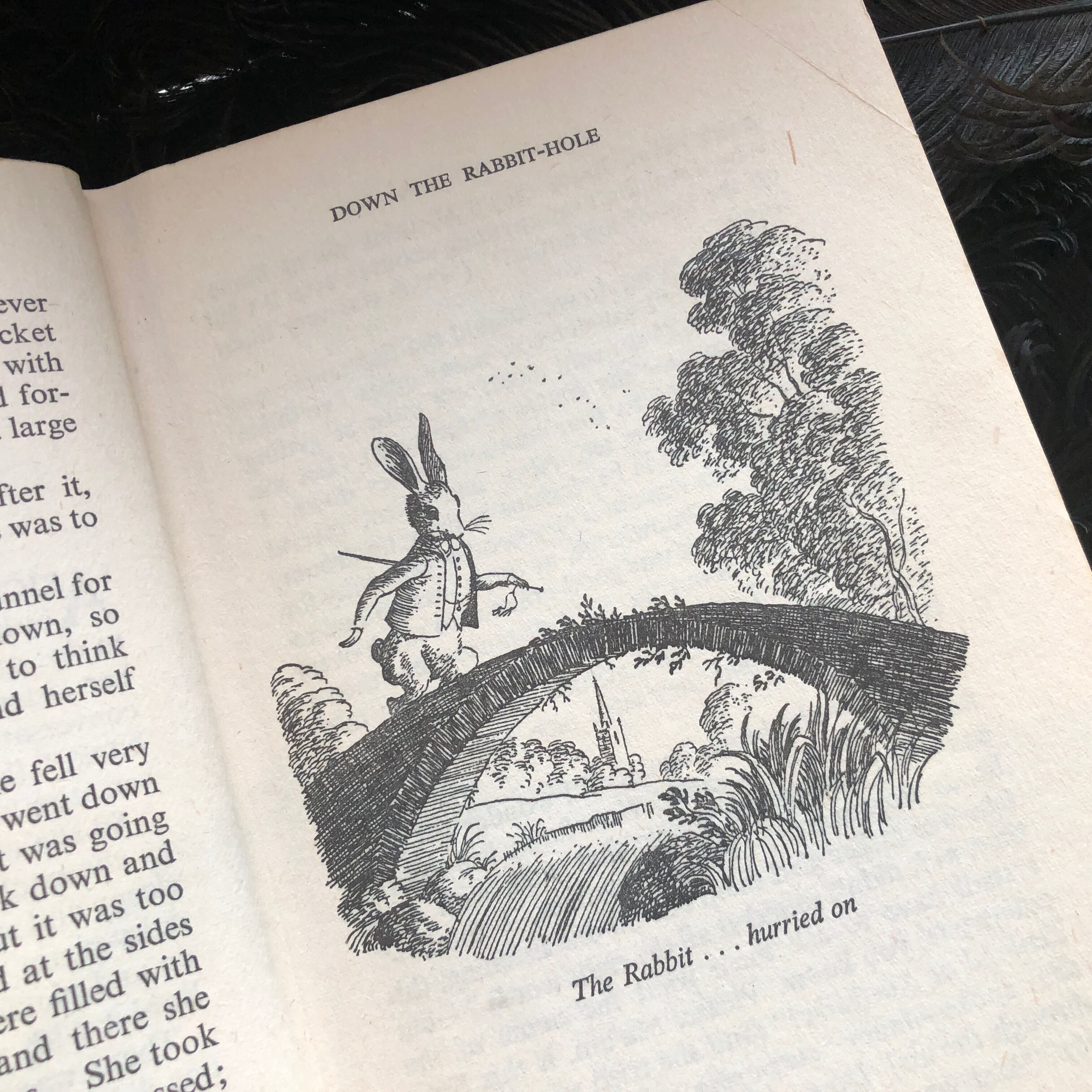 色彩挿絵が8枚、それ以外にも白黒の挿絵が多数入っています。アリスと言えばジョン・テニエルが有名ですが、こちらのアリスはフィリップ・ゴフの手によるもので、もっと表情豊かに生き生きとして、チョッキのポケットから懐中時計を出すウサギが通りかかれば当然、あとを追いかけて行きそうです。