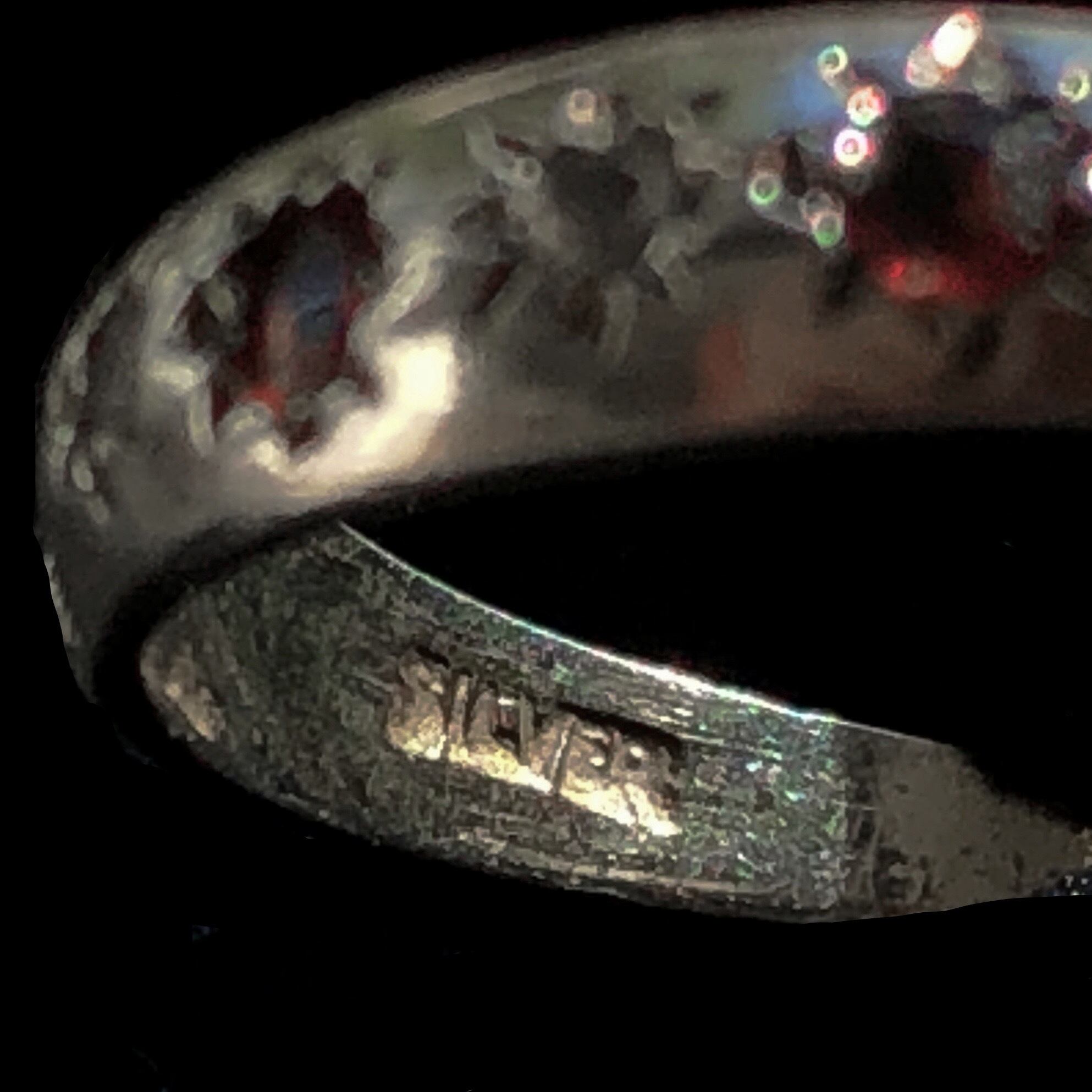 シルバーの台座に光を透過する透かし彫りで石を置いた指輪です。このように複数の石を煌めく星の意匠で台座に埋め込むスタイルは「ジプシーリング」と呼ばれます。その起源は18世紀に遡り、「愛」や「友情」の証として贈られました。