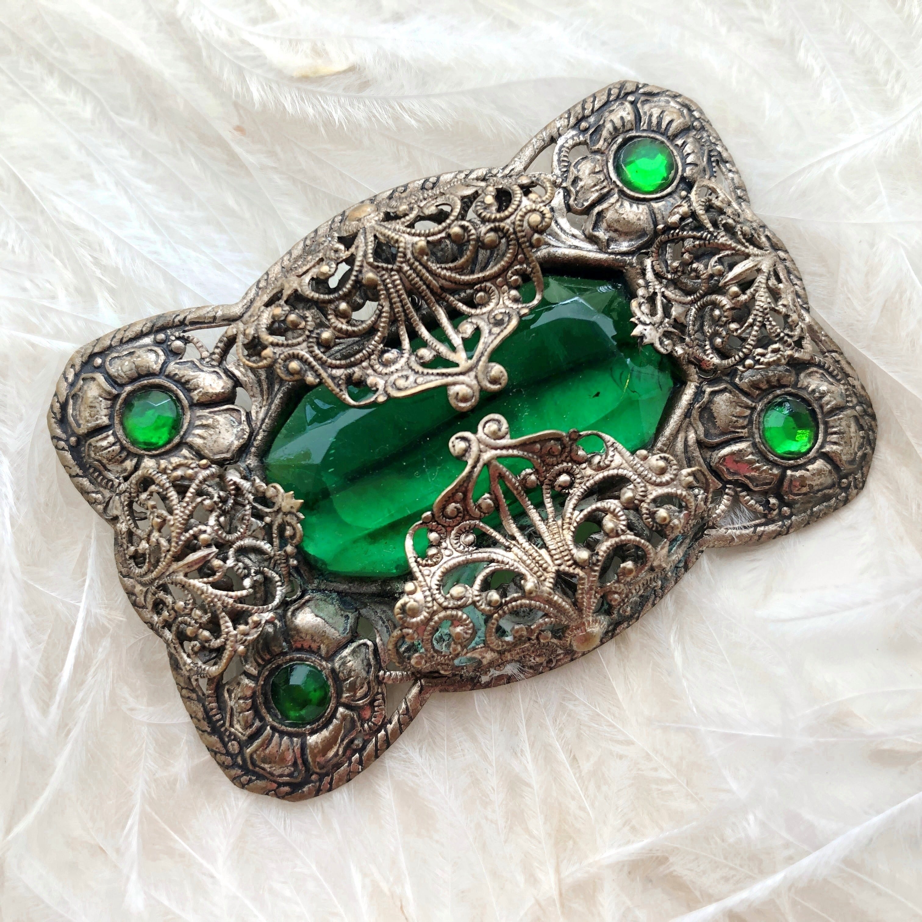 エメラルドガラスのブローチ