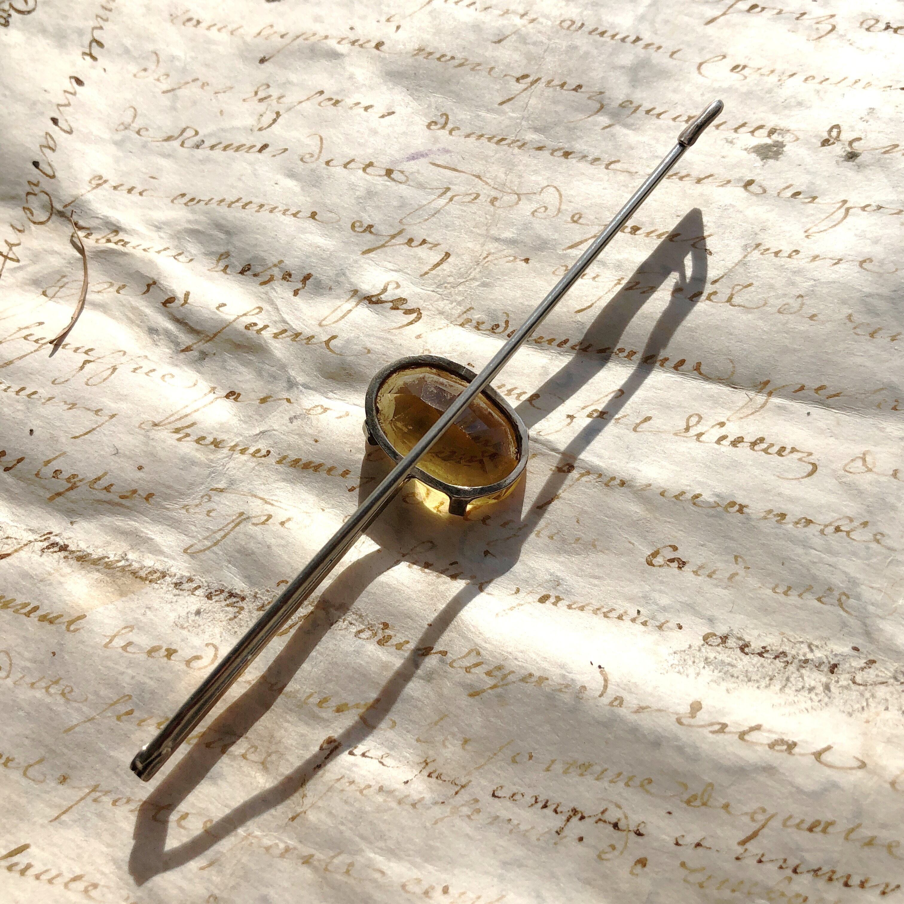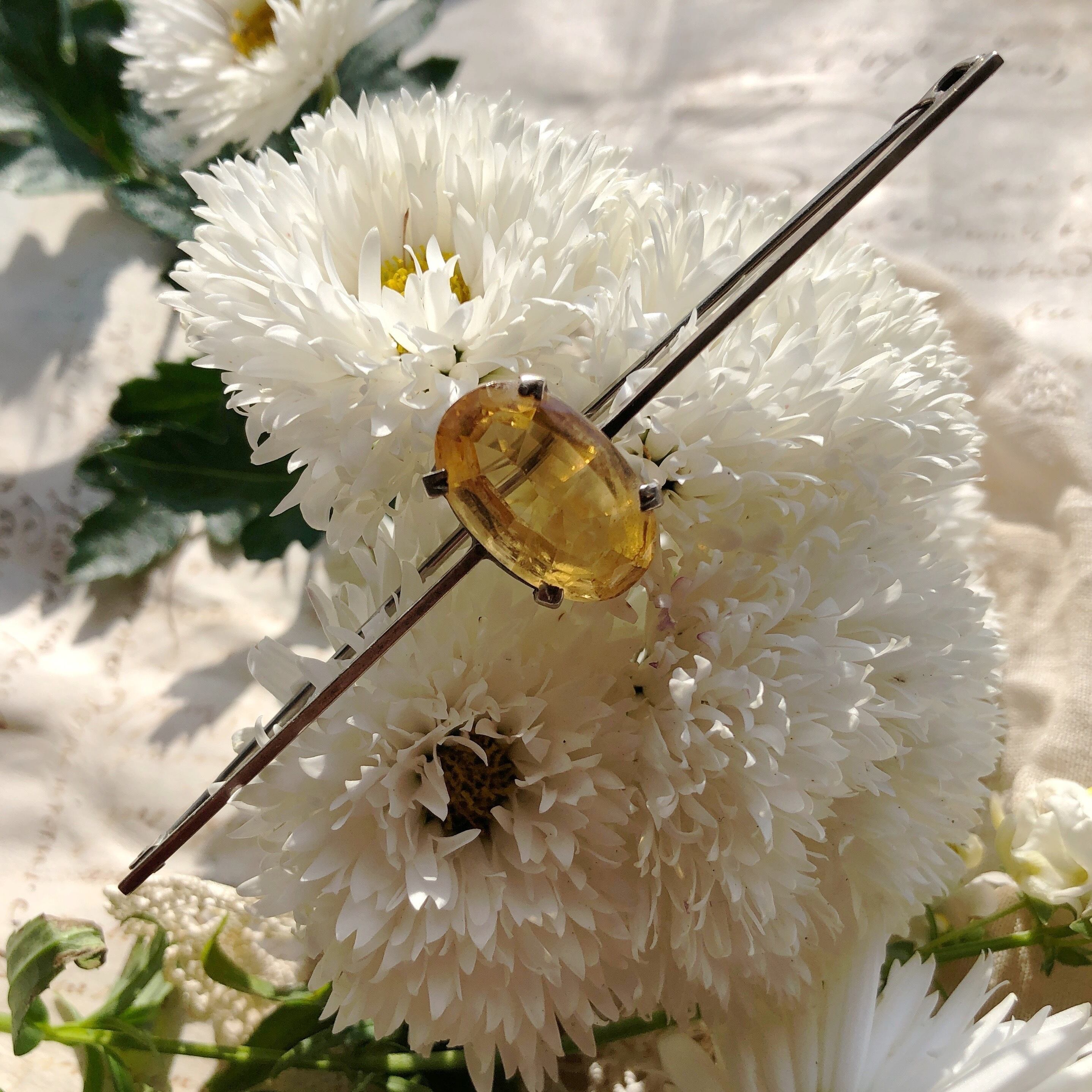 20世紀中頃までのイギリス製。サイズは、黄水晶が約1.1×1.6センチ、バーの長さが約9センチです。