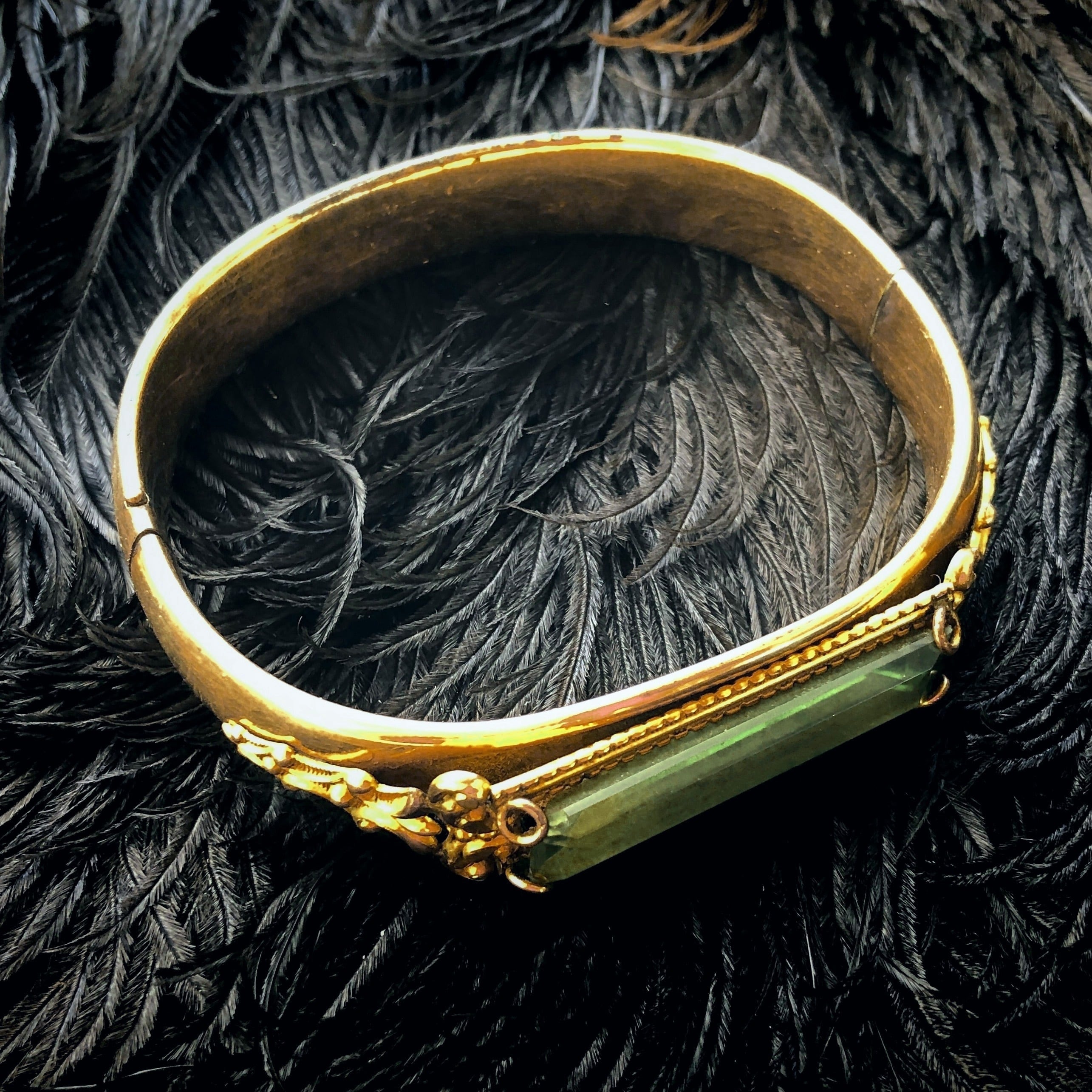 19世紀、ヴィクトリア朝のイギリス製。サイズは、ブレスレットの直径内寸が約6×5.5センチの楕円形です。ブレスレットは切り離せますが大きくは広がりませんのでご注意ください。